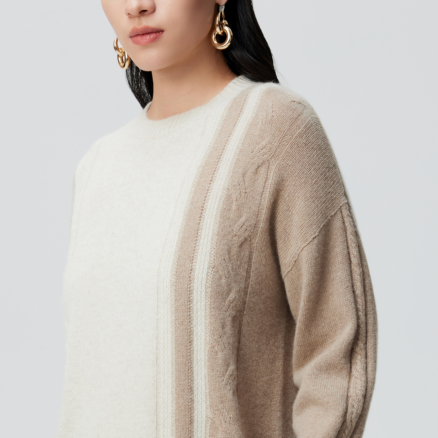 女士羊绒衫 春竹100%山羊绒季 针织衫 宽松气质无缝圆领套衫 新款