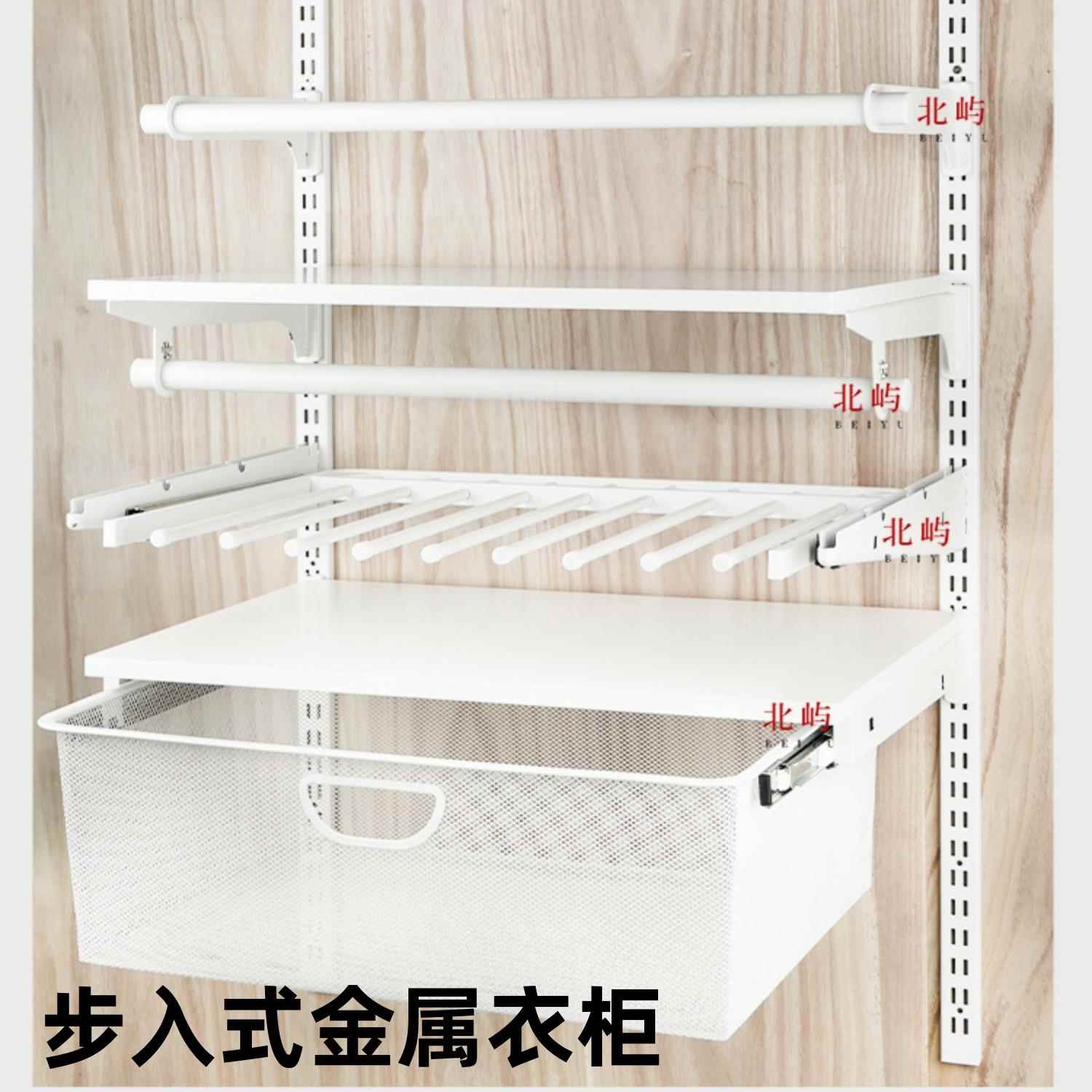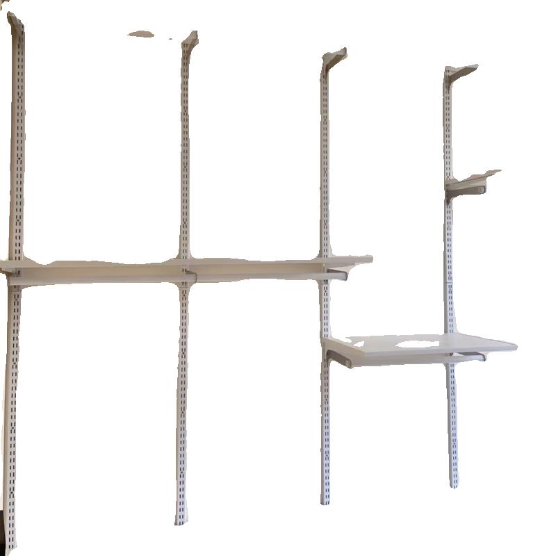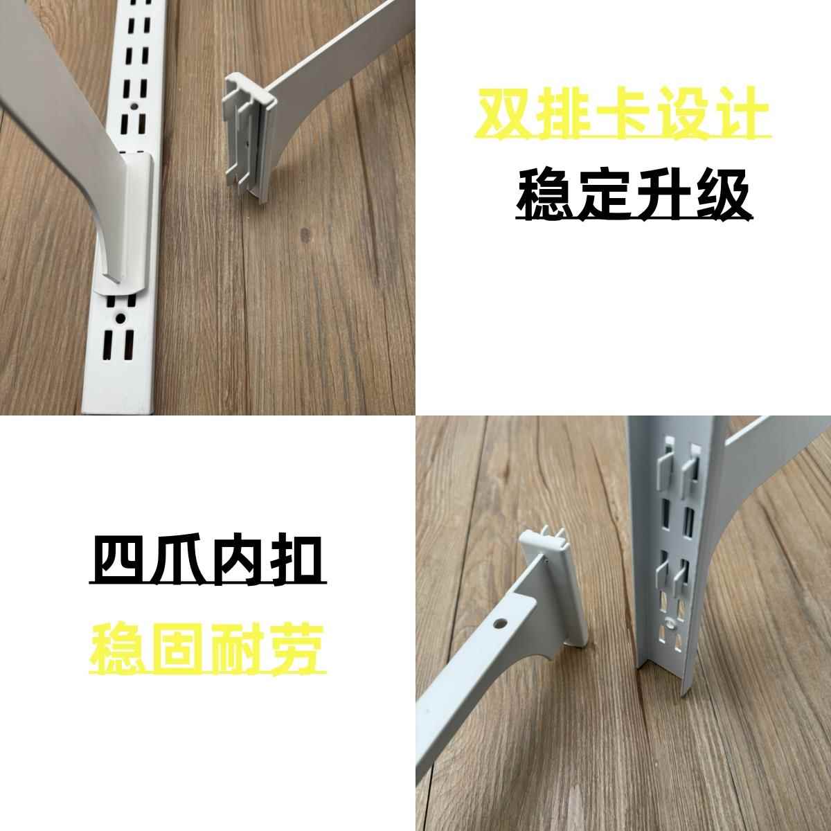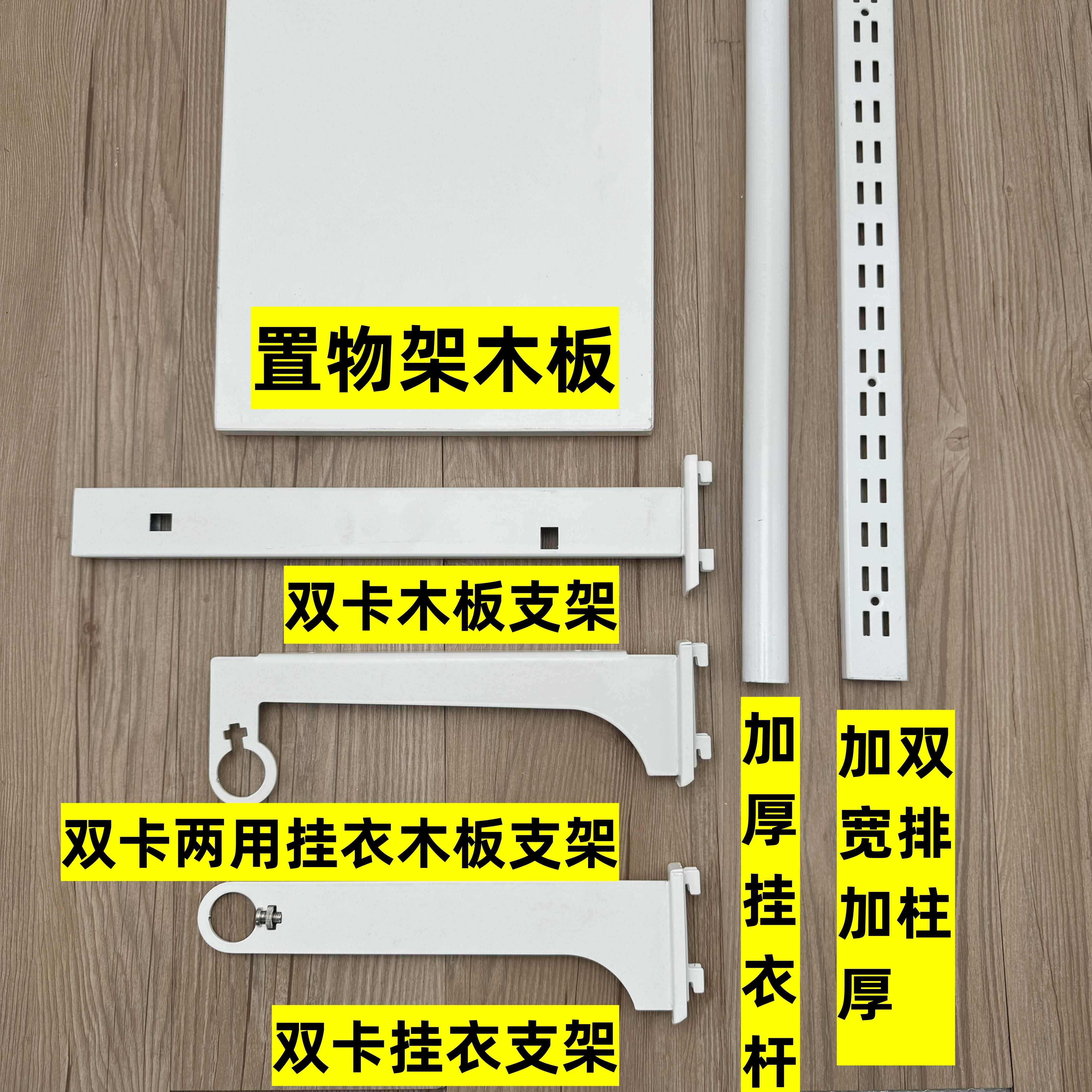金属衣帽间AA柱配件 白色双卡脚圆管两用挂衣杆托臂层板置物支架