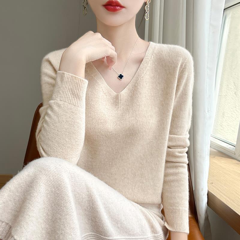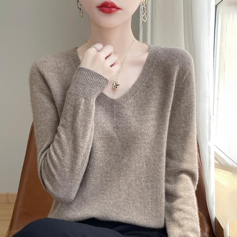 秋冬一线成衣V领套头毛衣女宽松显瘦针织打底衫 上衣1006r 内搭长袖