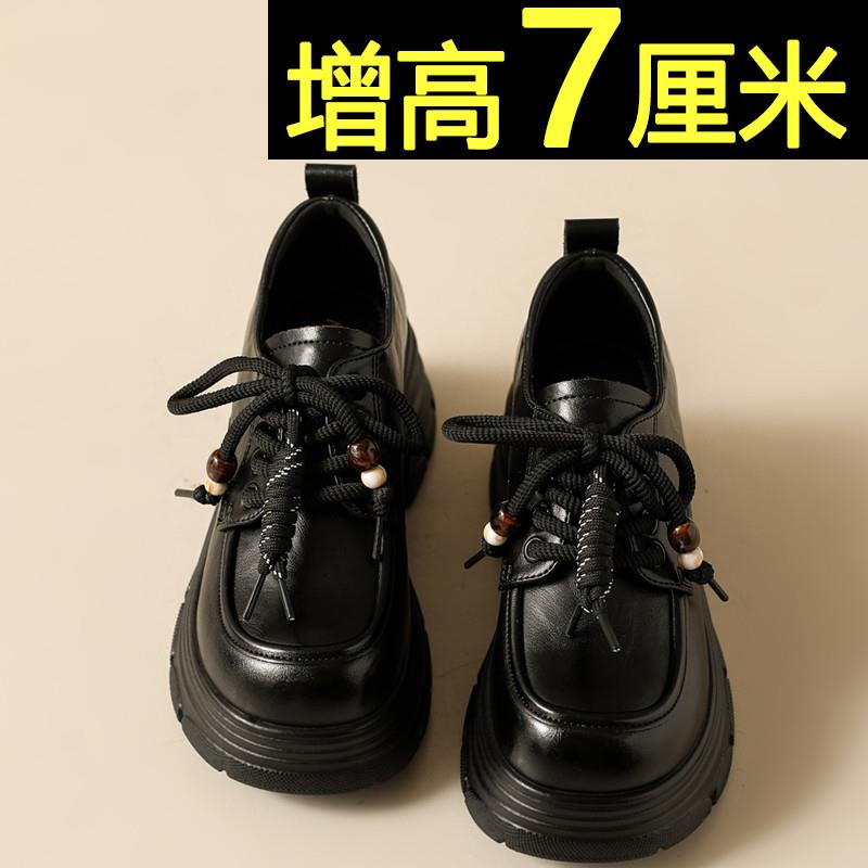 春秋百搭英伦风黑色小皮鞋 女2025新款 一脚蹬单 增高厚底乐福鞋 新品