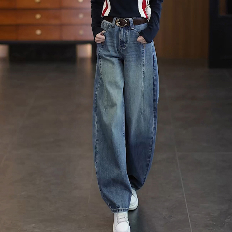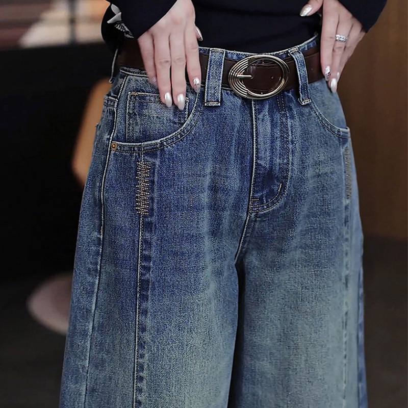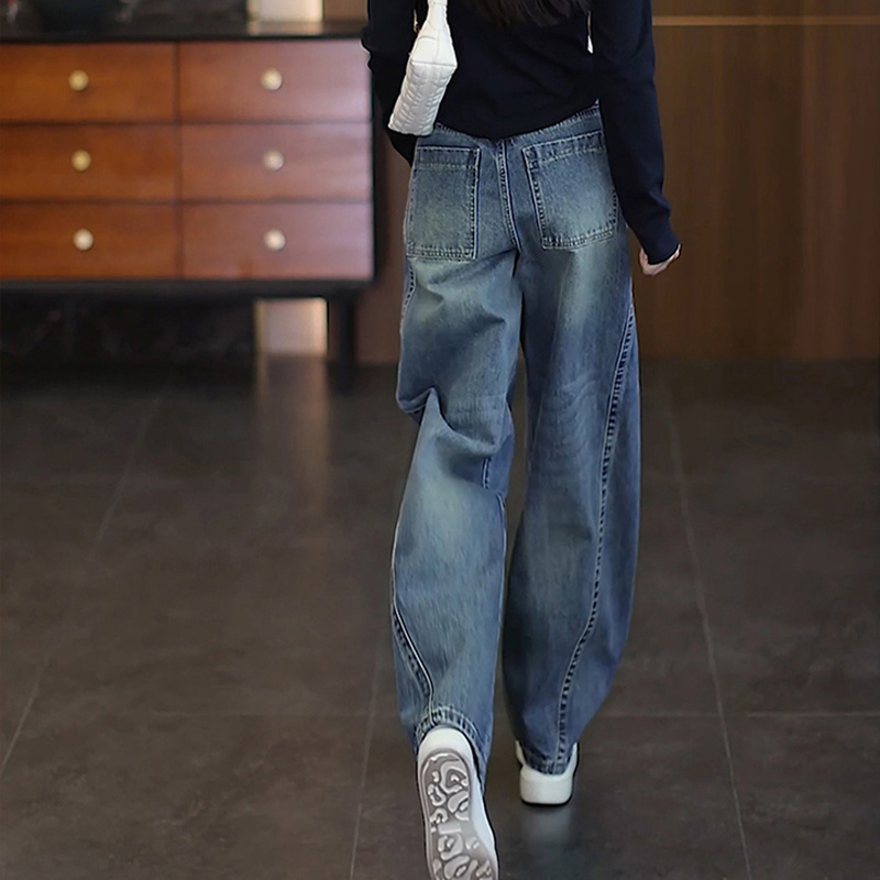 女冬季 复古垂坠渐变直筒阔腿牛仔裤 40933287 建模裤 艾诺丝雅诗