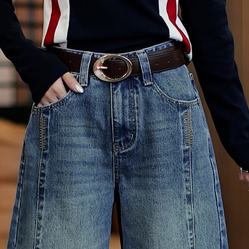 宽松撞色复古长裤 女秋2025年新款 LABS莱赛尔中腰直筒牛仔裤 LEIYU