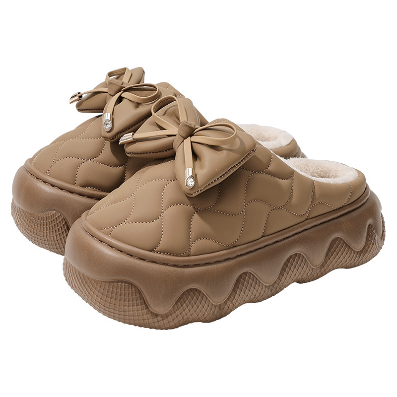 室内居家外穿轻便棉鞋 增高防水2025女冬季 PU厚底棉鞋 棉拖鞋 新款