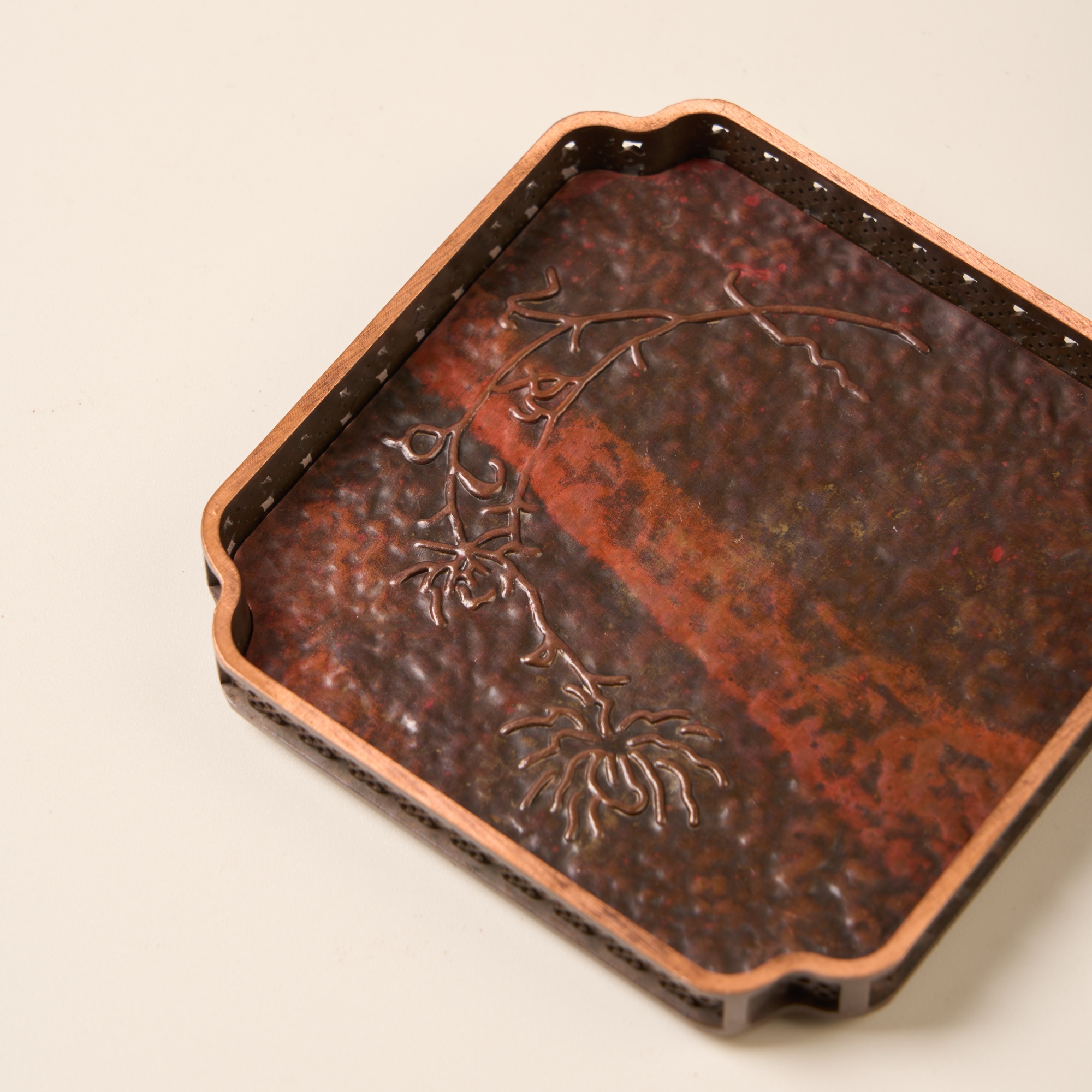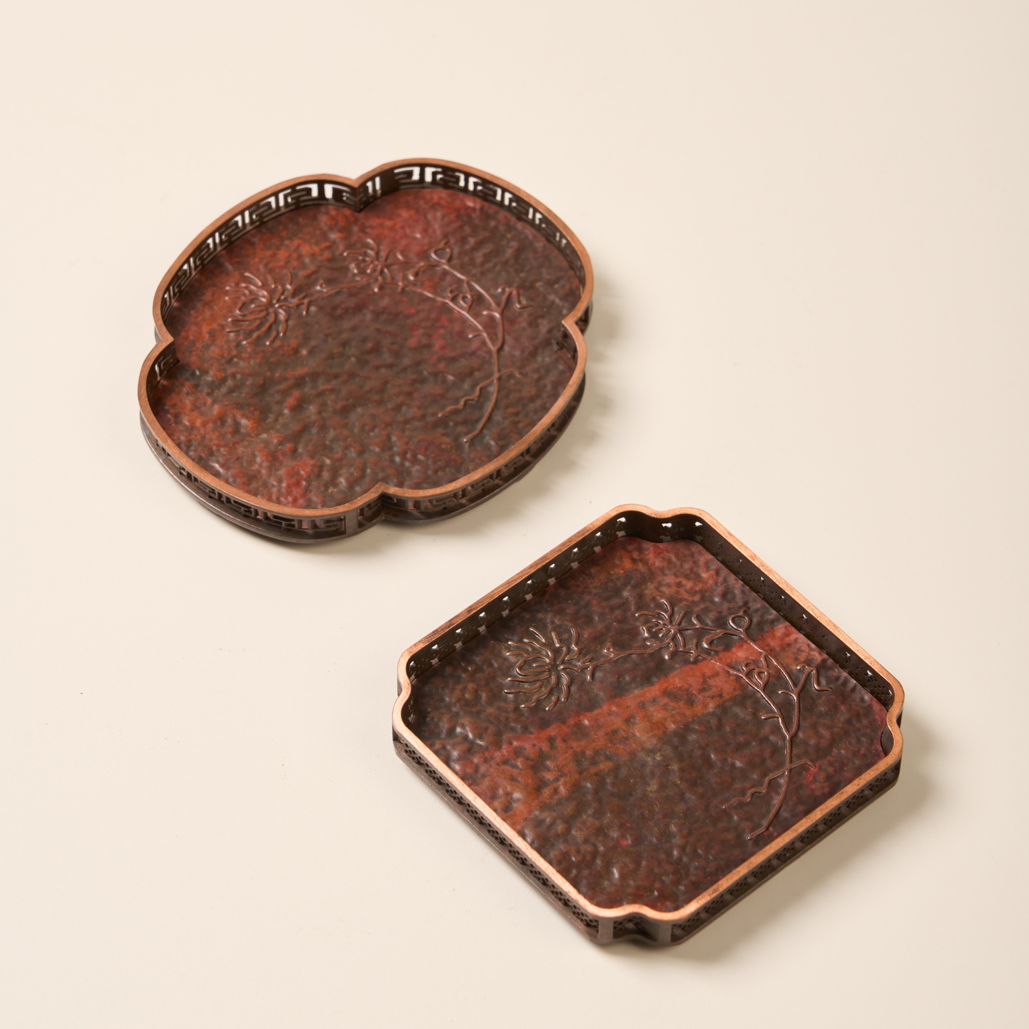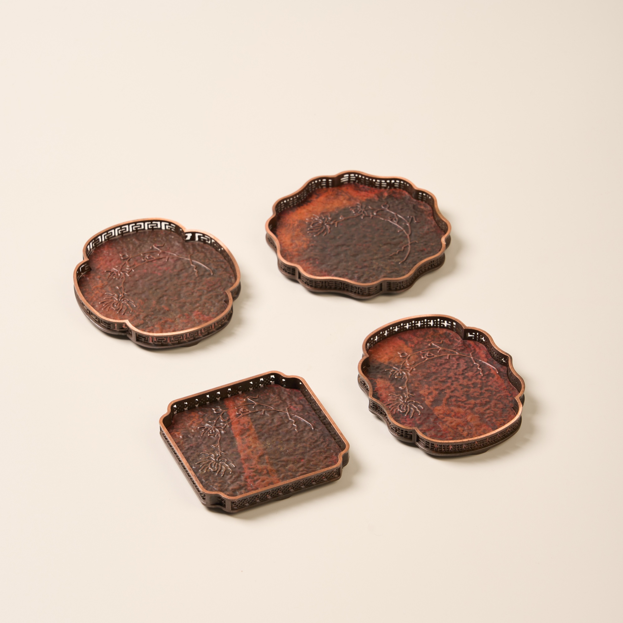 盈德堂紫铜创意四方杯垫家用办公室纯铜浮雕杯托茶室轻奢简约茶垫