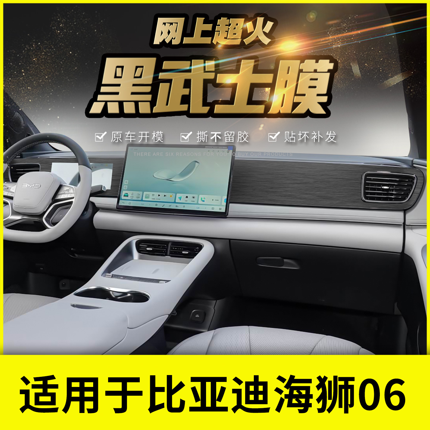 比亚迪海狮06ev中控贴膜dmi仪表台副驾钢琴烤漆贴纸内饰用品配件