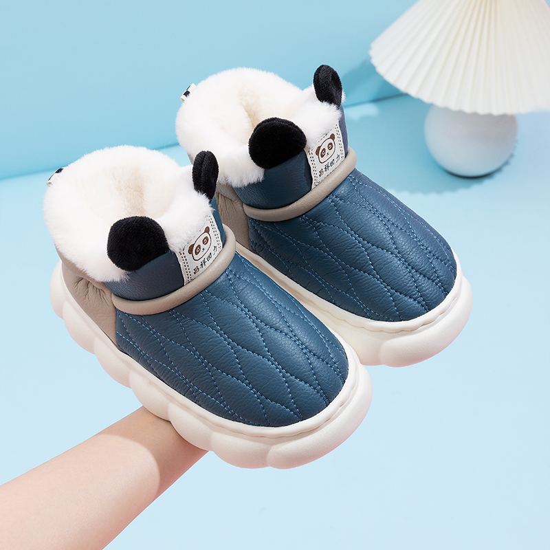 女中大童保暖棉鞋 男宝宝室内PU皮面防水家居鞋 防滑 冬季 儿童棉拖鞋