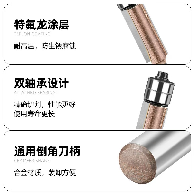 蓝胜修边刀双轴承大全锣机雕刻机刀具修边机刀头双刃直刀木工铣刀