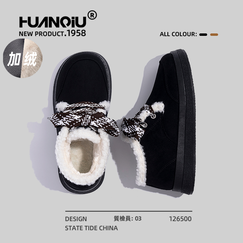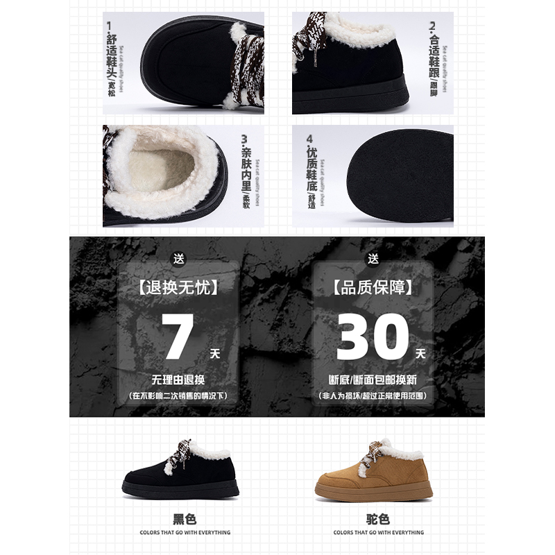 保暖加绒面包鞋 防水短筒增高棉鞋 新款 松糕厚底雪地靴女2025年冬季