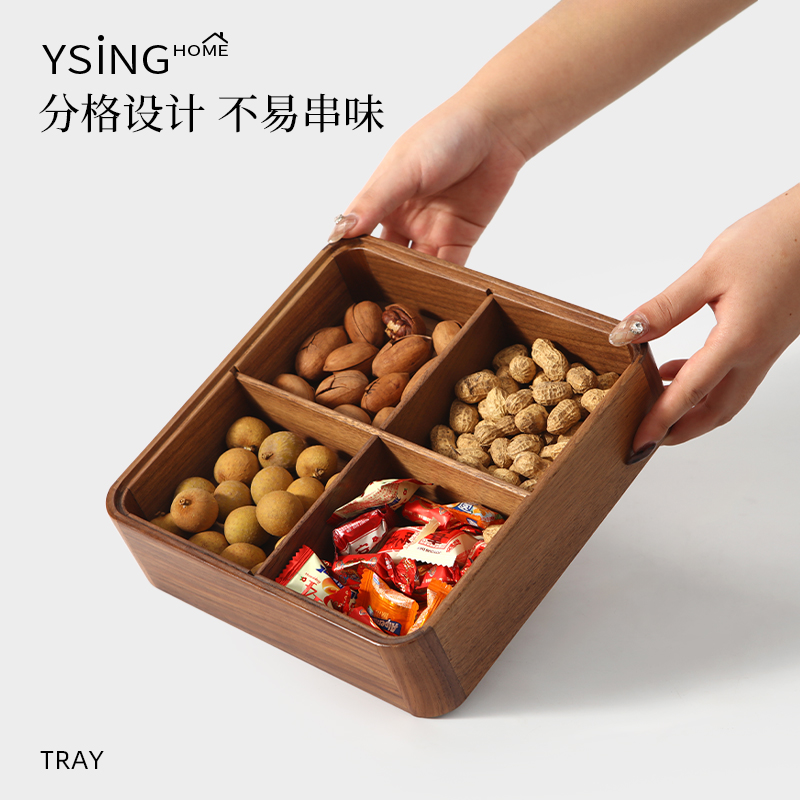 北美黑胡桃木果盘乔迁之喜高端大气中古风新年果盒茶几零食摆放盘