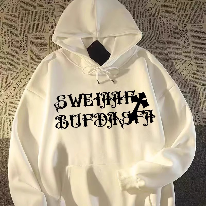 大码 高街嘻哈十字架翅膀印花连帽卫衣男女秋冬情侣外套2 300斤美式