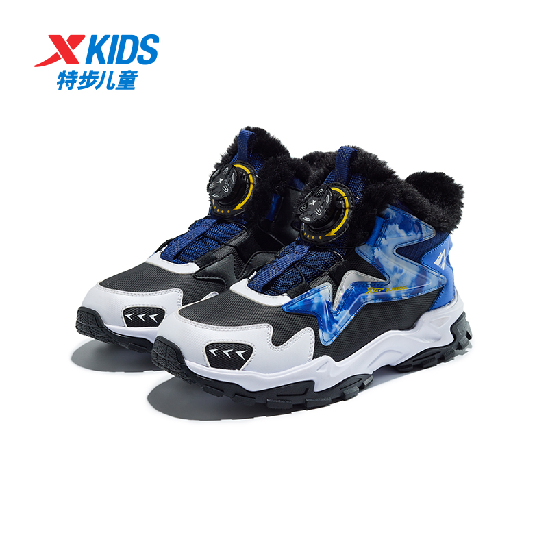 冬季 篮球鞋 新款 旋钮扣软底运动鞋 中大童 休闲缓震男童棉鞋 特步童鞋