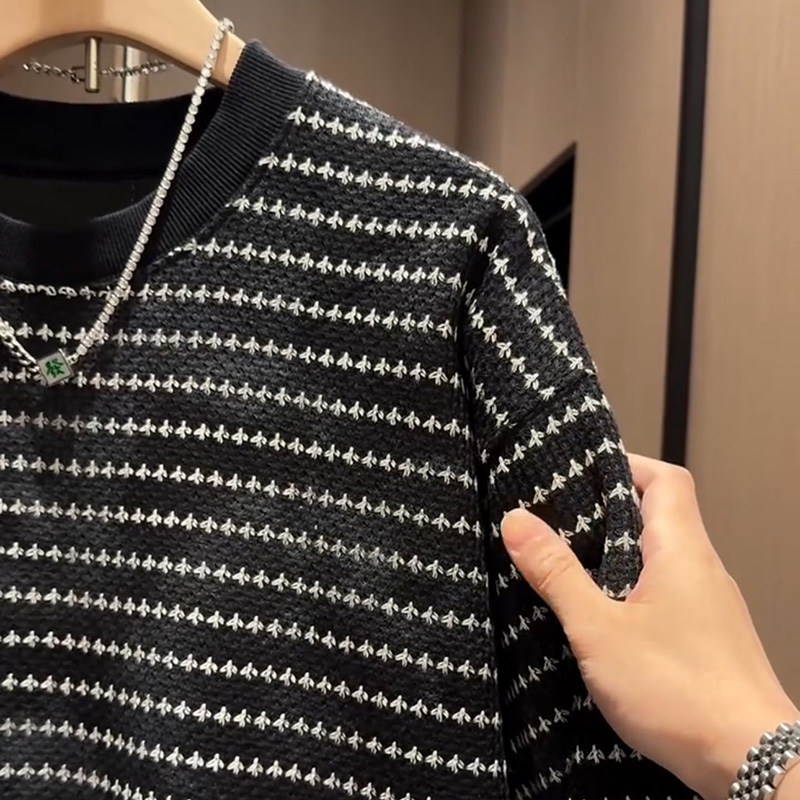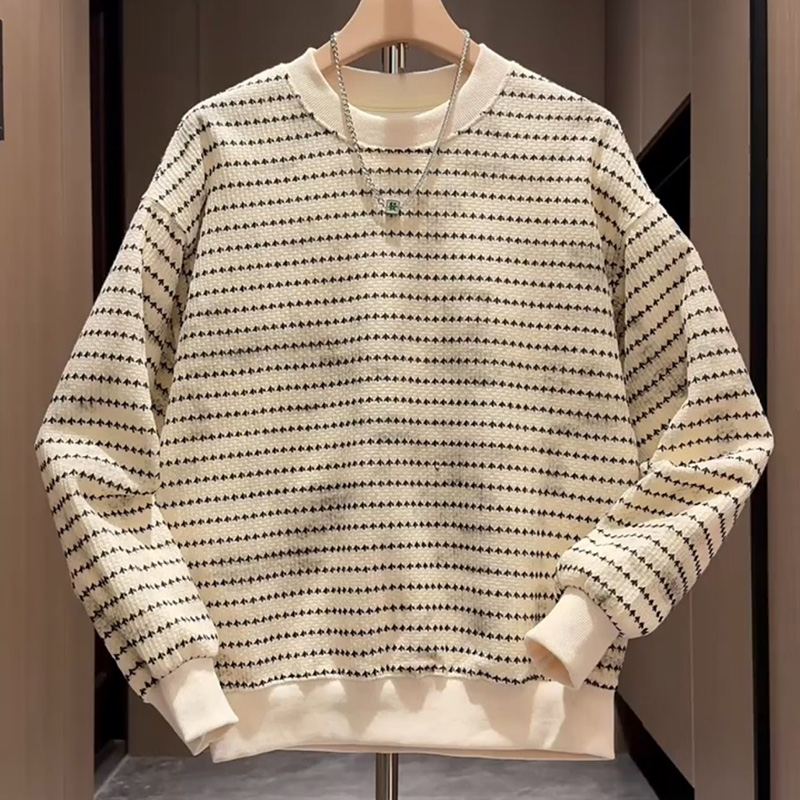 四条杠BF外套潮 套头打底衫 华夫格卫衣男秋冬美式 宽松百搭圆领长袖