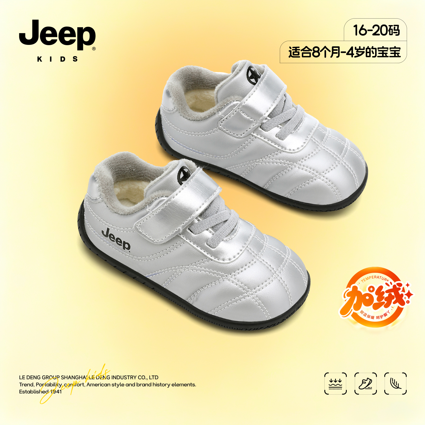 加绒保暖儿童棉鞋 jeep童鞋 软底防滑机能鞋 秋冬婴儿鞋 宝宝学步鞋