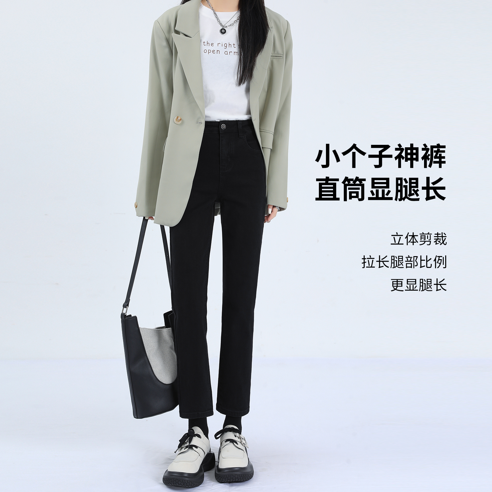 2025秋季 阔腿裤 新款 窄版 小个 高腰深色遮肉显瘦大码 逸阳直筒牛仔裤