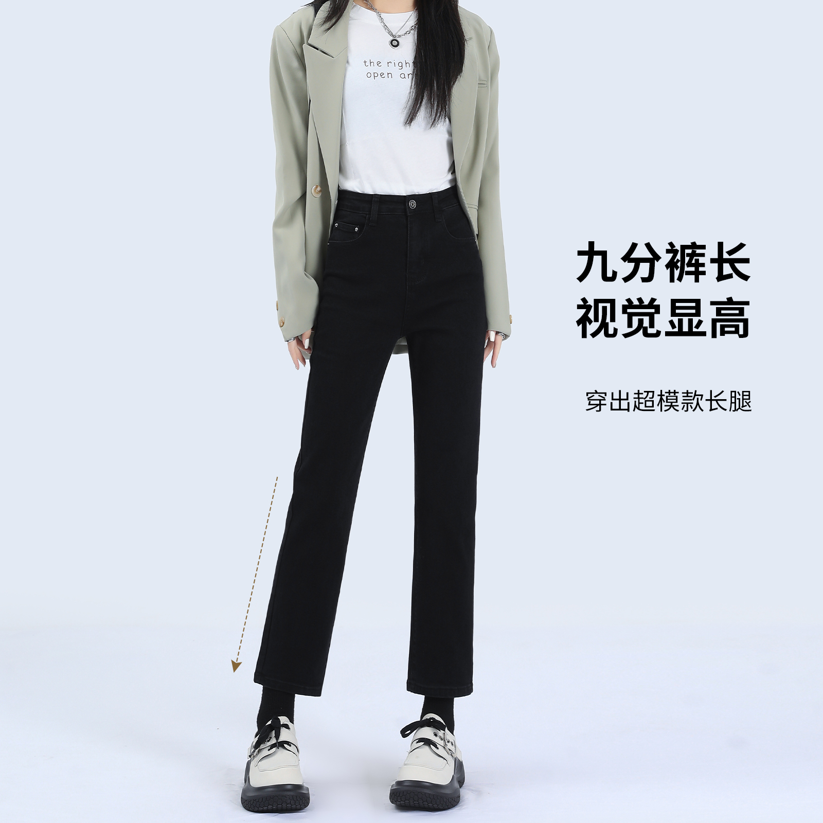 百搭辣妹提臀紧身铅笔九分裤 高级感韩版 复古水洗浅蓝色小脚牛仔裤