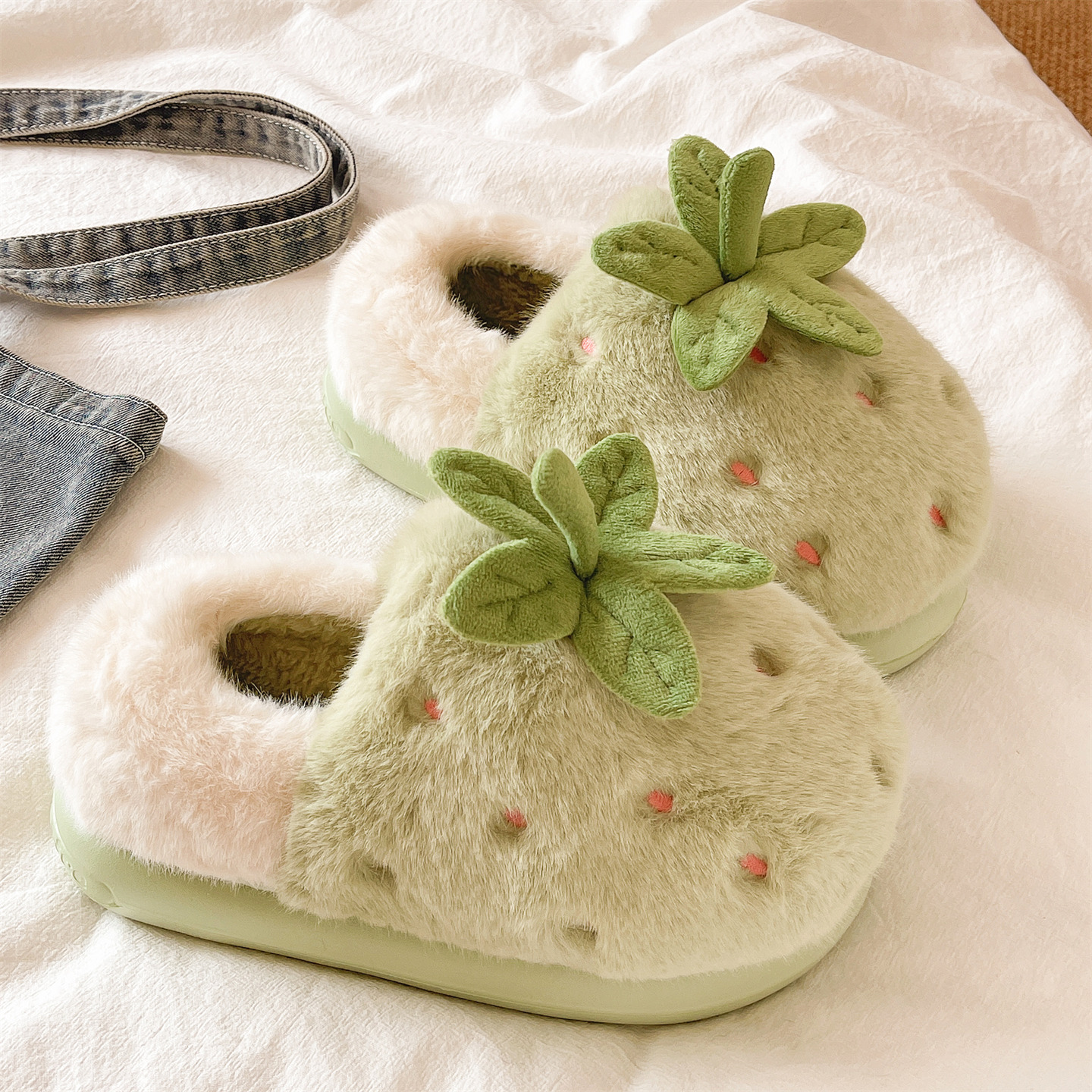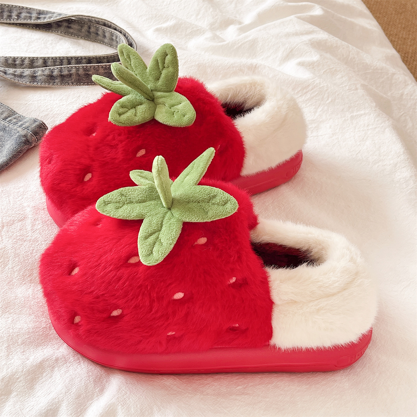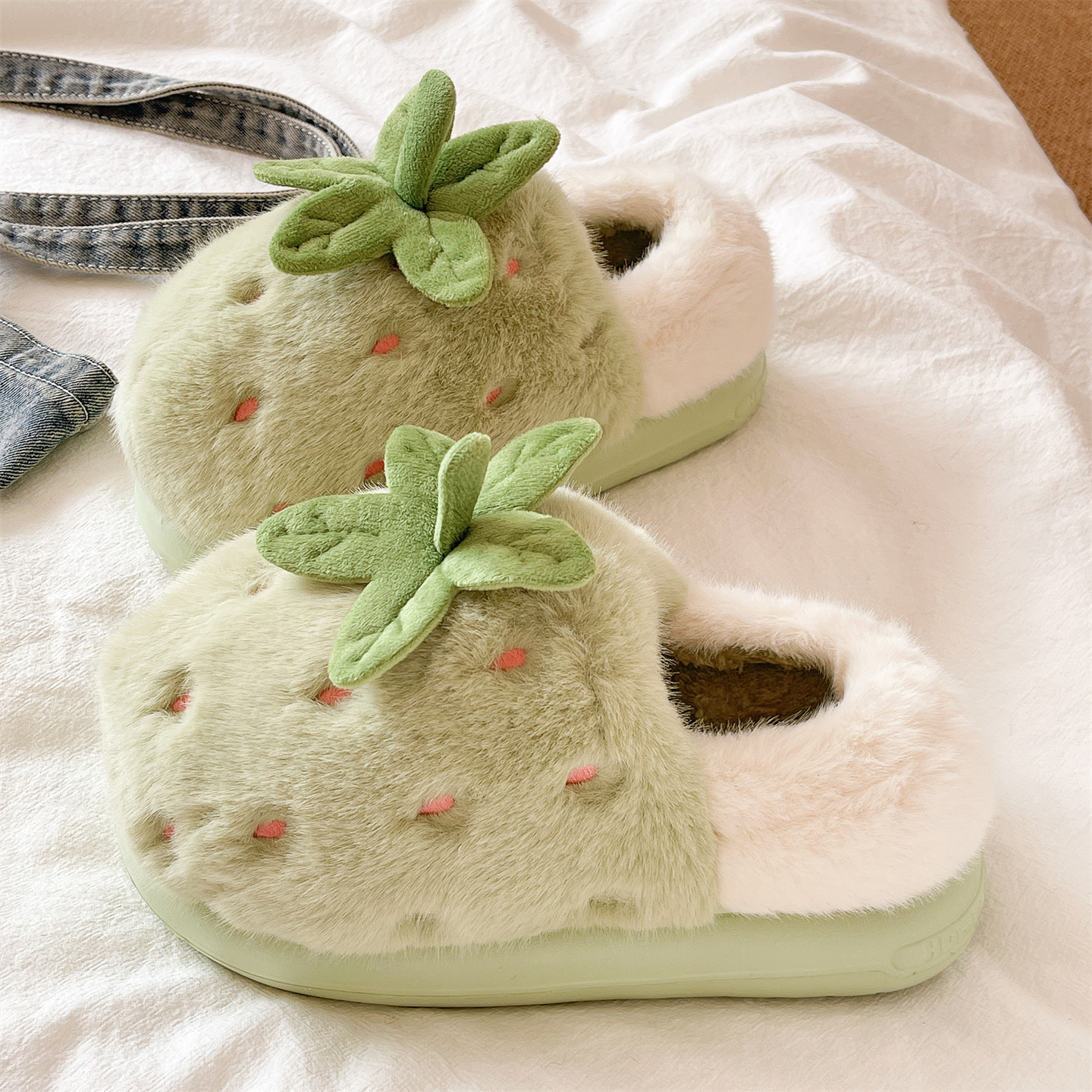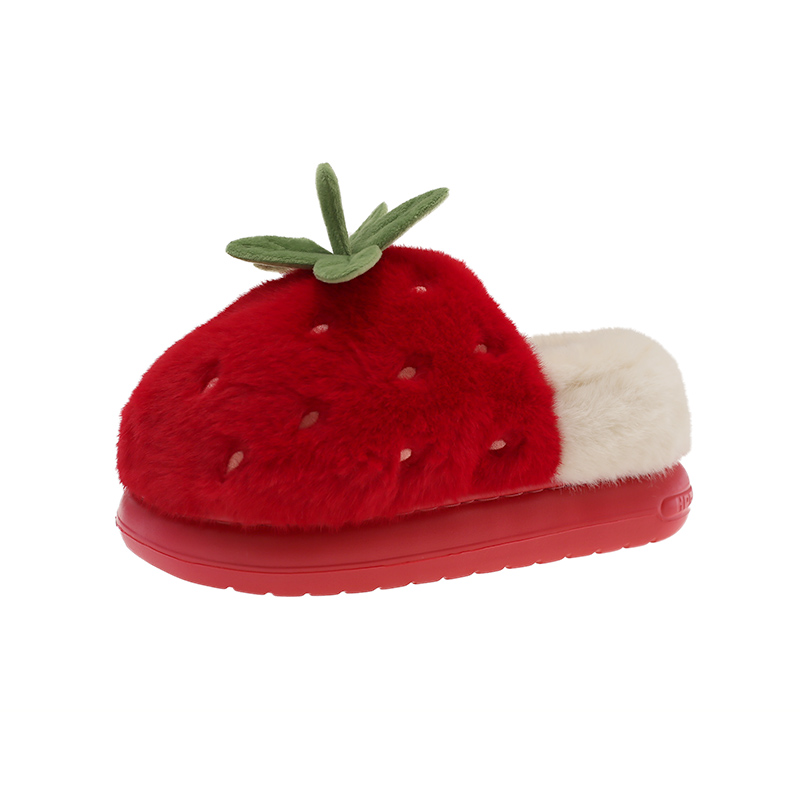室内居家加厚毛绒月子保暖厚底防滑可爱草莓包跟棉鞋 棉拖鞋 女冬季