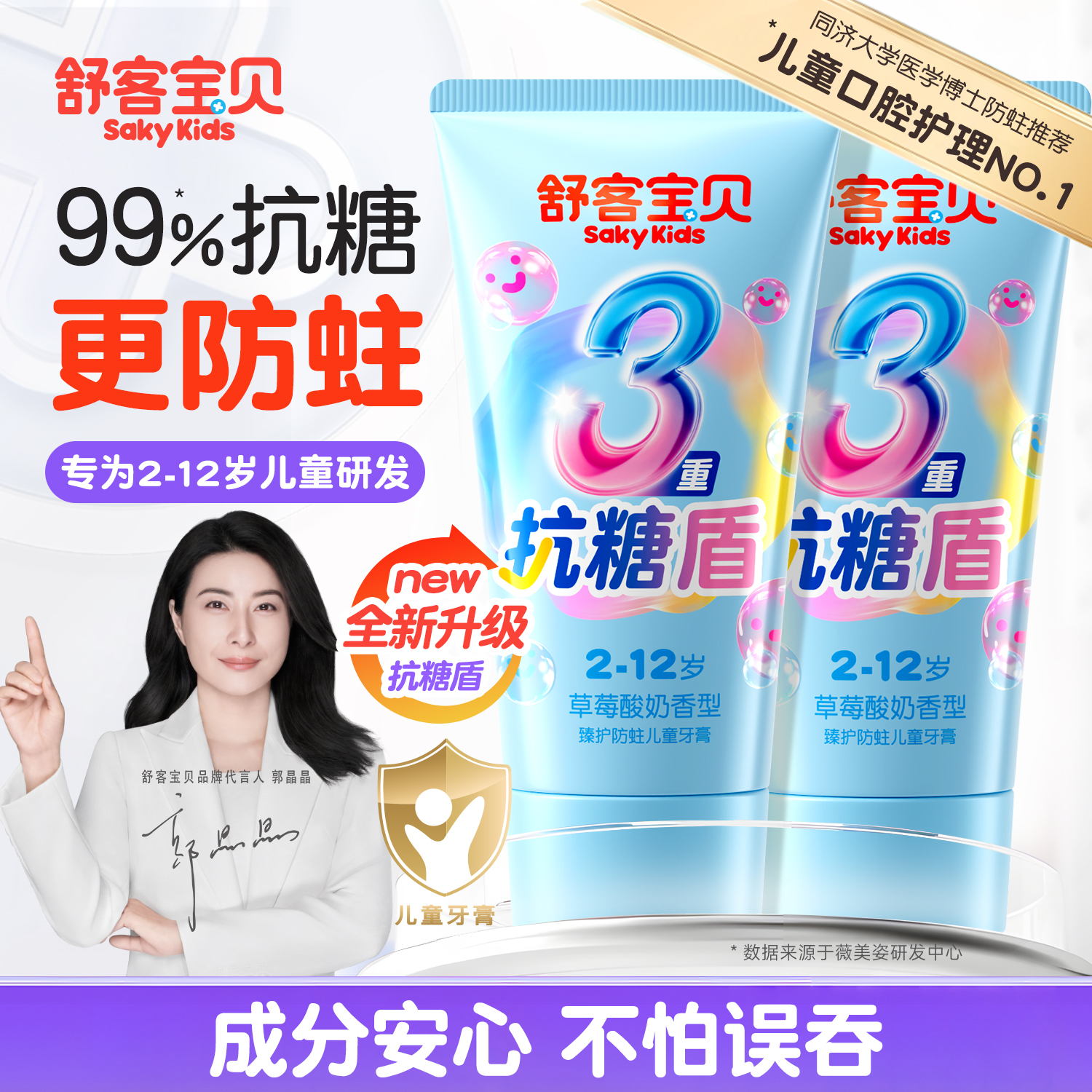 恐龙医生抗糖防蛀儿童牙膏3到6岁以上12含氟宝宝防蛀酸防龋益生菌