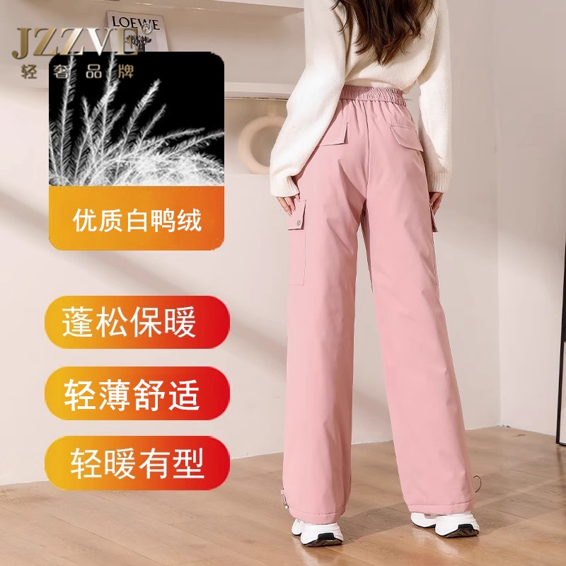 防风加绒加厚保暖外穿轻薄舒适高腰直筒靴裤 羽绒裤 秋冬季 新款 女式