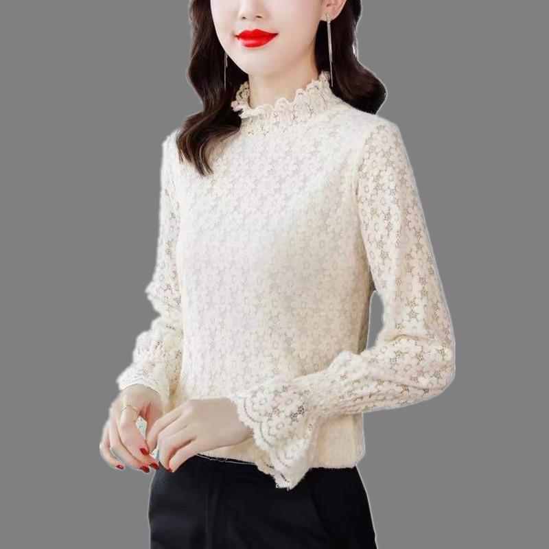 秋冬打底内搭半高领磨毛加绒蕾丝衫 女2025加厚柔软喇叭1007k