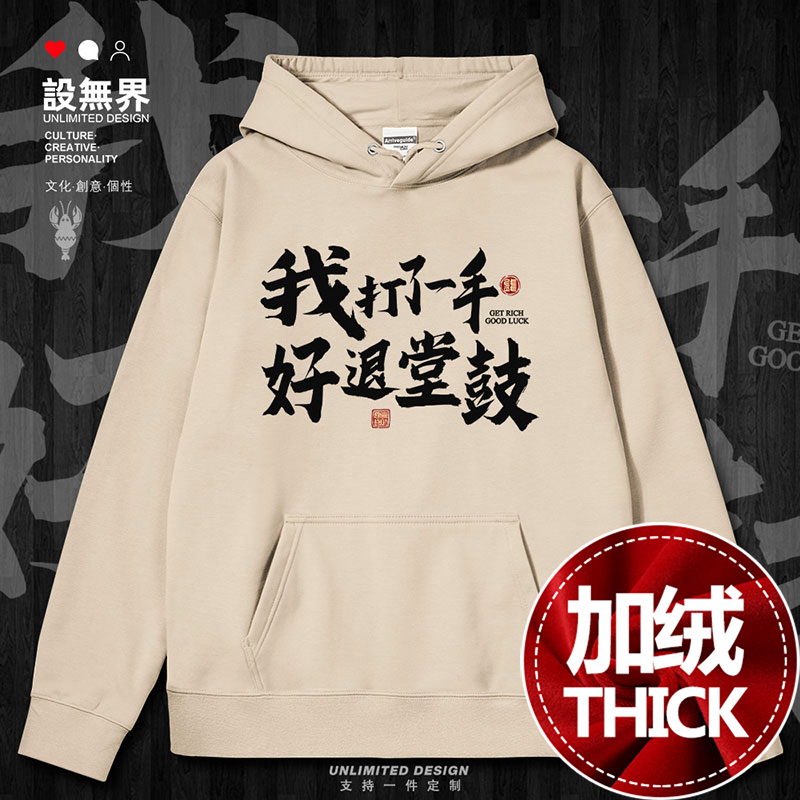 趣味文字我打得好一手赚钱机器人连帽卫衣男女运动服0018设 无界