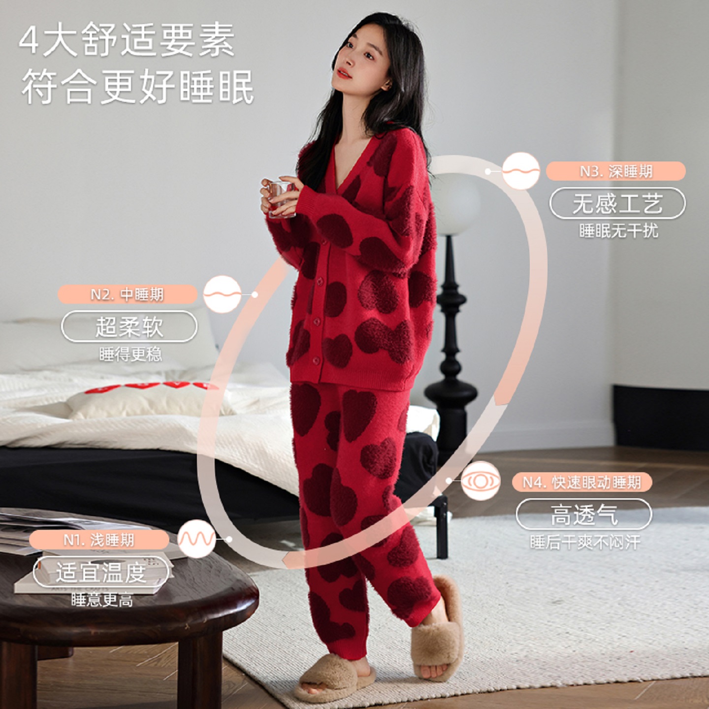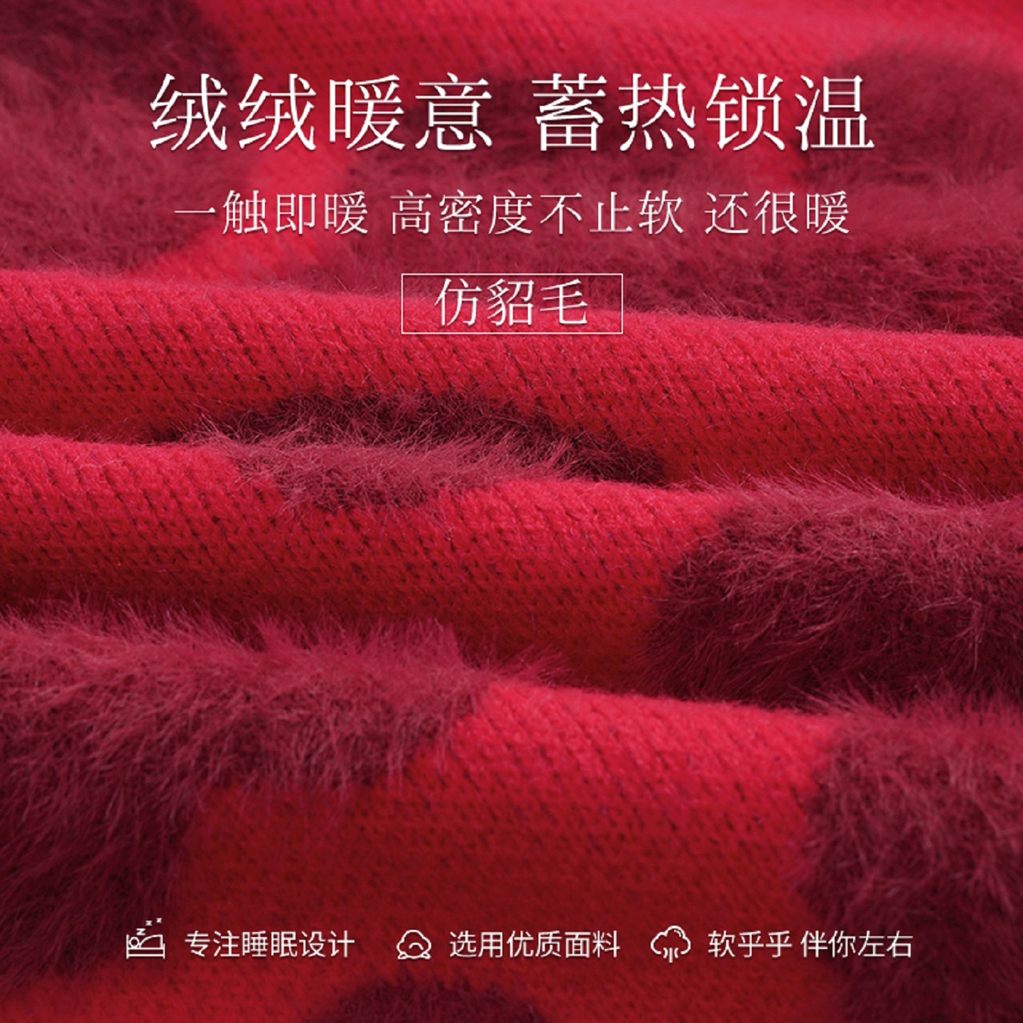 红色本命年冬天家居服套装 南极人睡衣女款 开衫 半边绒保暖长袖 冬季