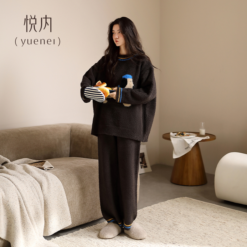 悦内半边绒睡衣女冬季 珊瑚绒软绵绵毛绒家居服保暖狗可外穿 秋冬款