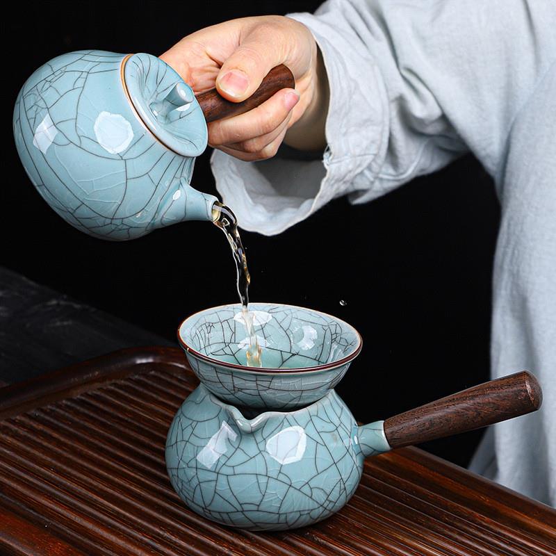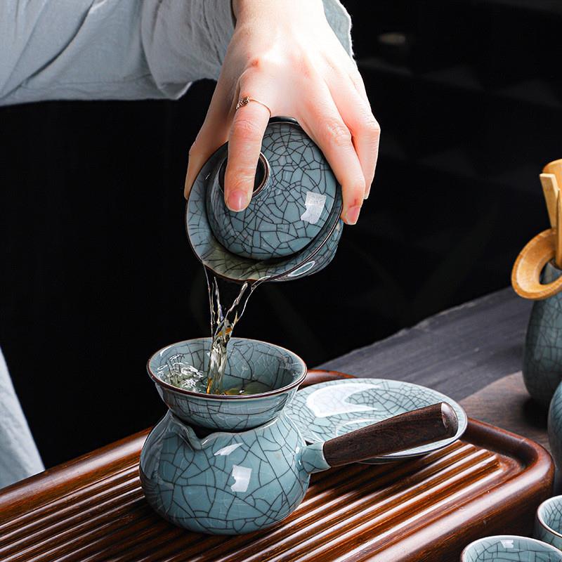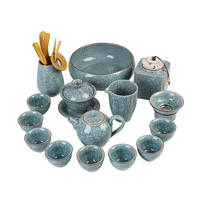 青瓷传世哥窑蚯蚓走泥纹茶具套装 陶瓷功夫茶壶整套礼品