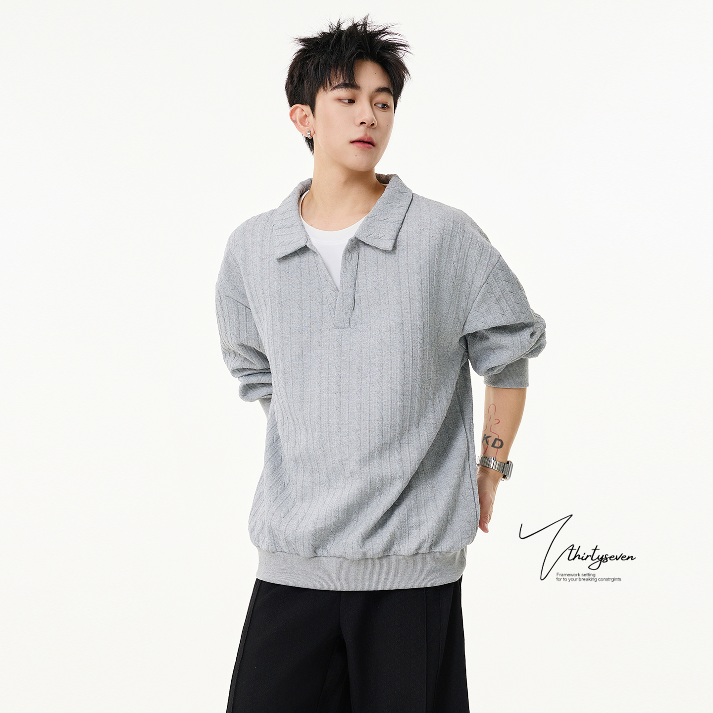 新品 GXG男装 2025秋季 上衣内搭 圆领卫衣背后大图案双色长袖