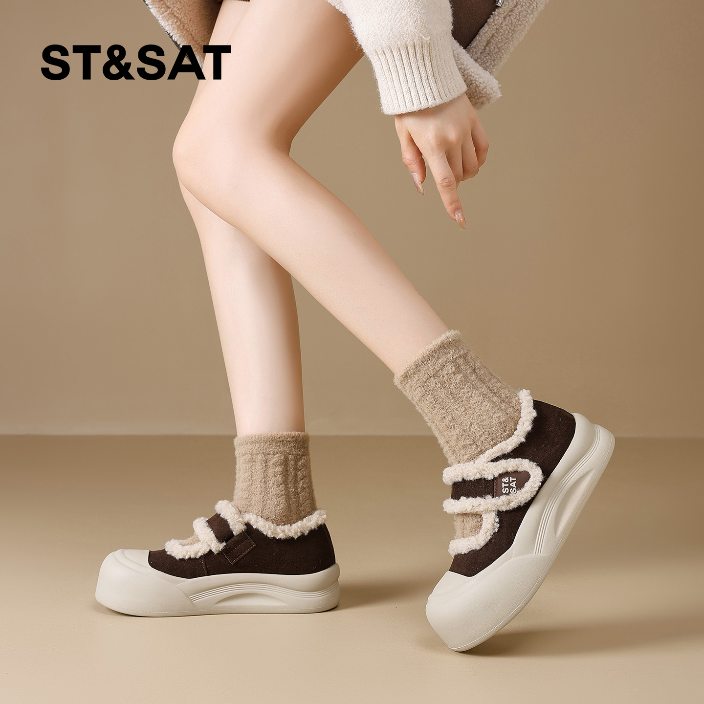 皮毛一体户外保暖加绒加厚棉鞋 冬季 女 2025新款 环球厚底雪地靴女款
