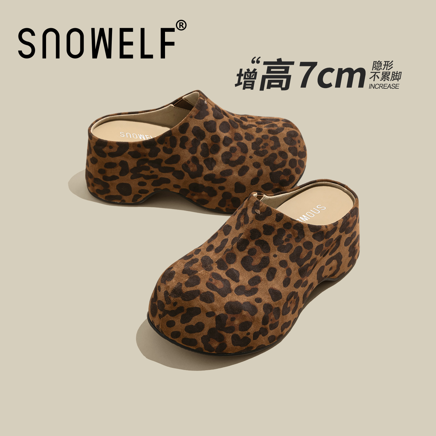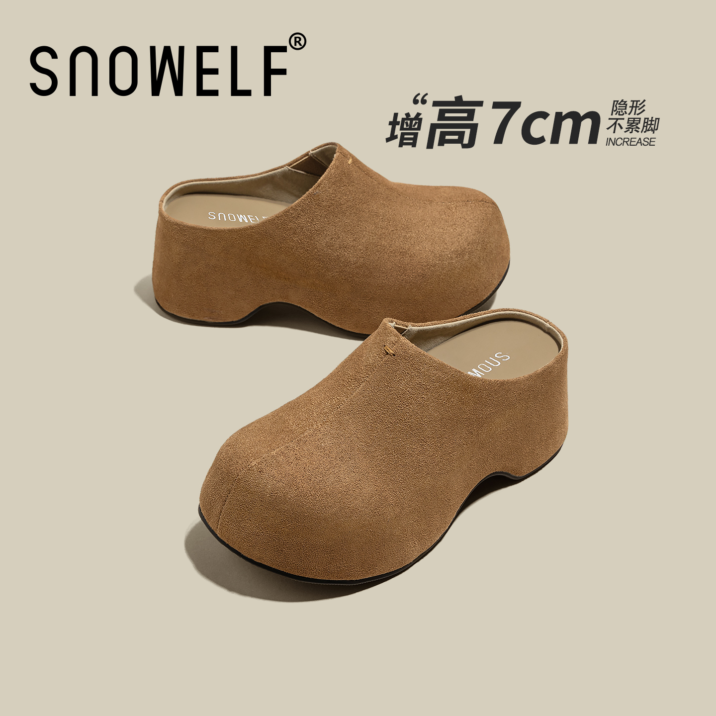 秋冬百搭增高一脚蹬懒人拖鞋 子女2025新款 单鞋 复古真皮厚底勃肯鞋