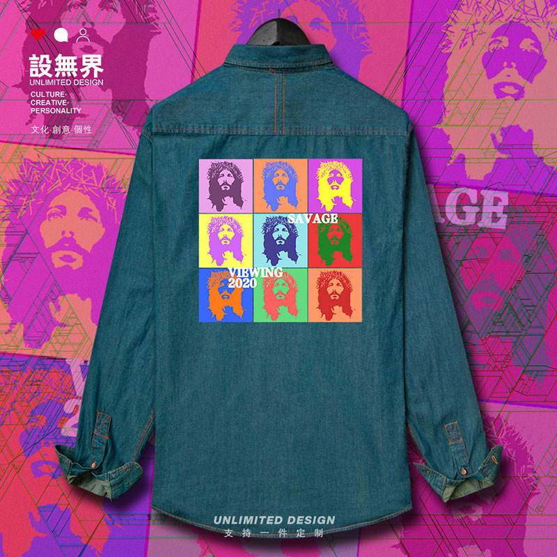 秋设 男女服装 无界 九宫格流行摇滚朋克人像图案牛仔衬衫 波普风格