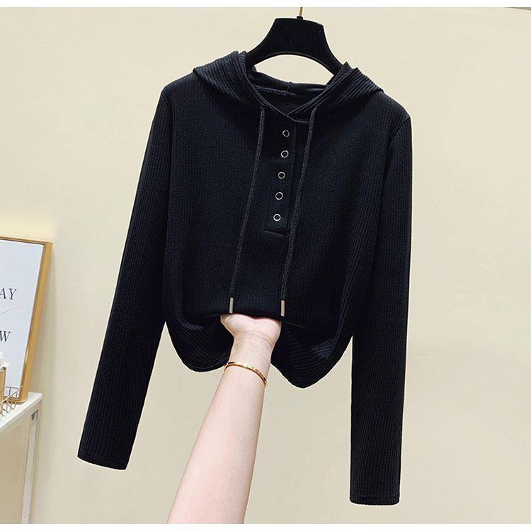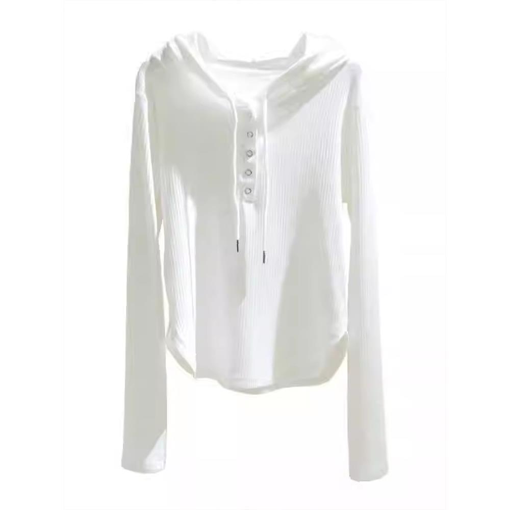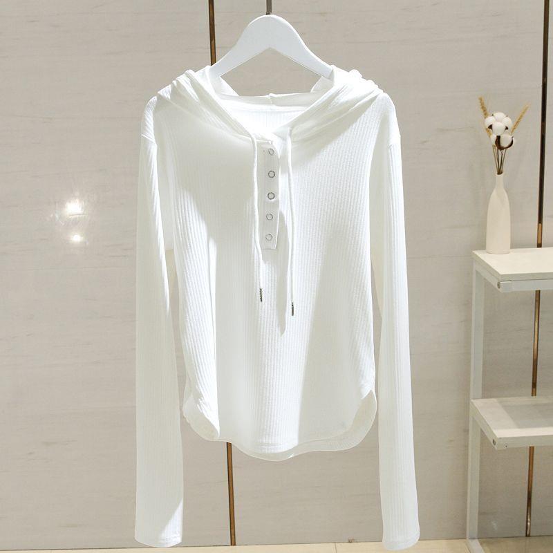 秋冬女士打底连帽正肩长袖 T恤女流行穿搭白色内搭可外穿打底1020n