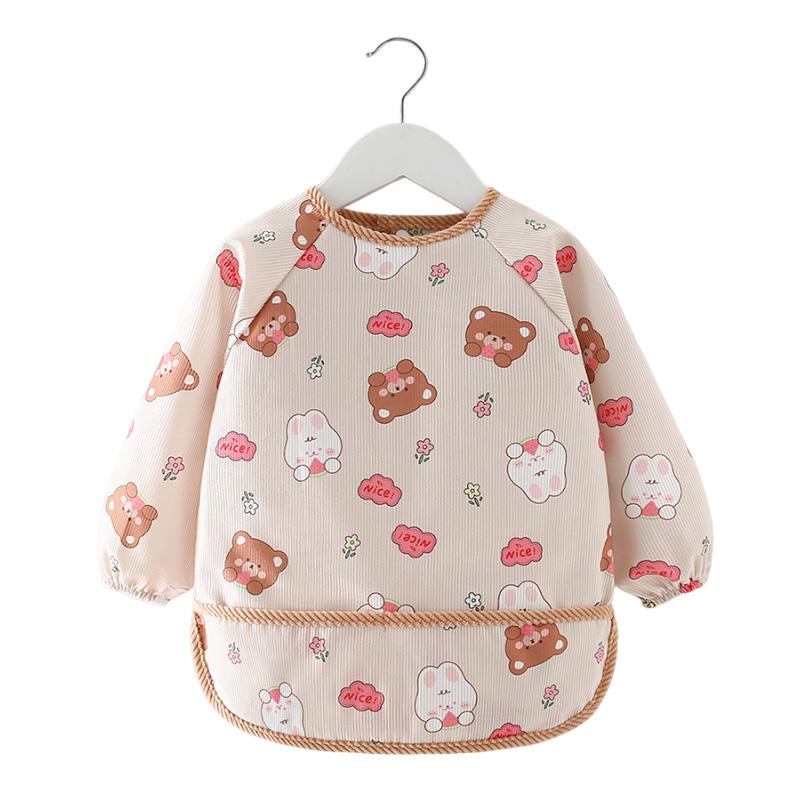 欧孕宝宝罩衣秋冬外穿儿童灯芯绒防水防脏吃饭围兜婴儿辅食反穿衣