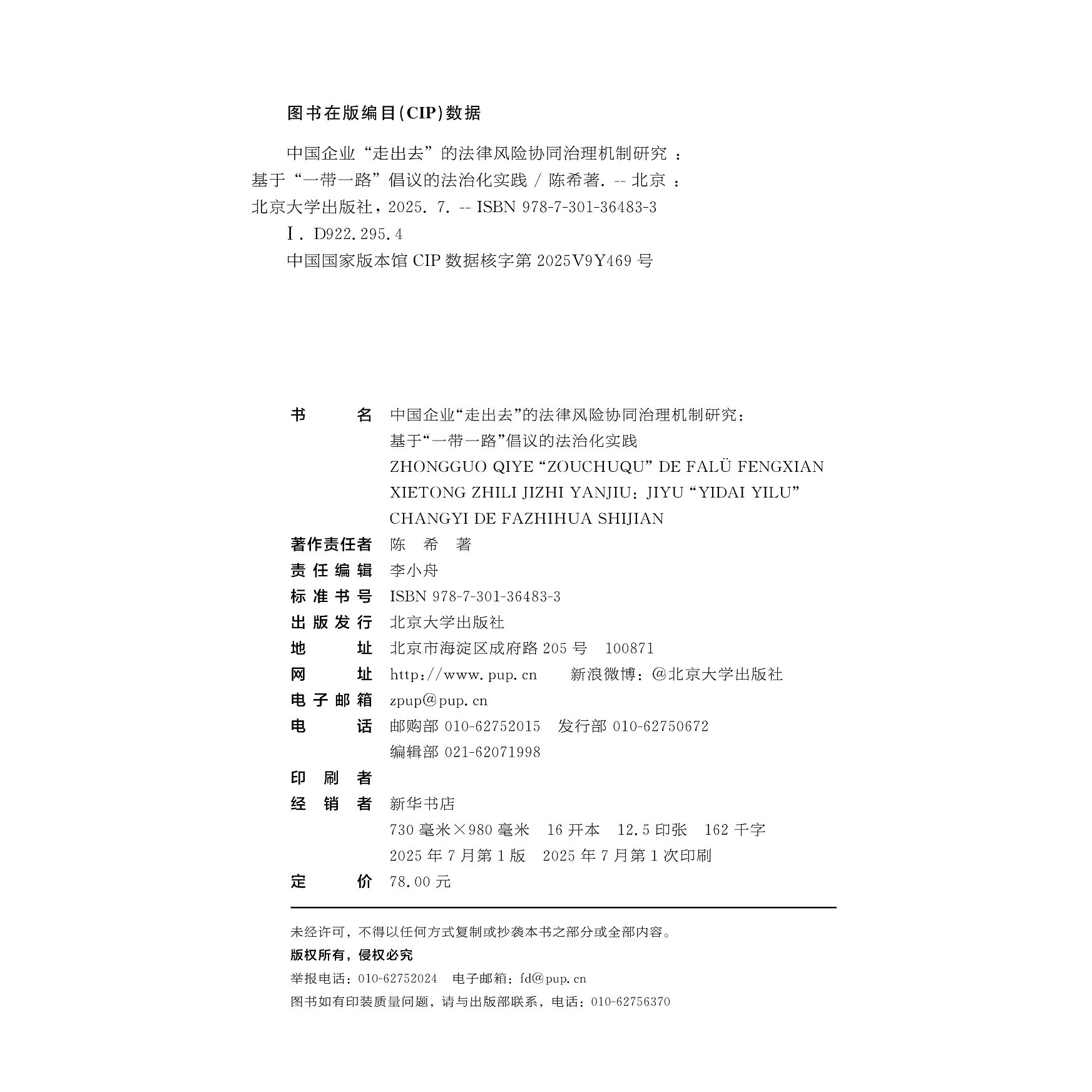 倡议 9787301364833 法律风险协同治理机制研究 社 北京大学出版 法治化实践 一带一路 基于 陈希 走出去 中国企业