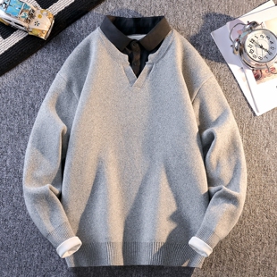 针织打底衫 保暖内搭爸爸装 毛衣加绒加厚假两件新款 红蜻蜓中年男士