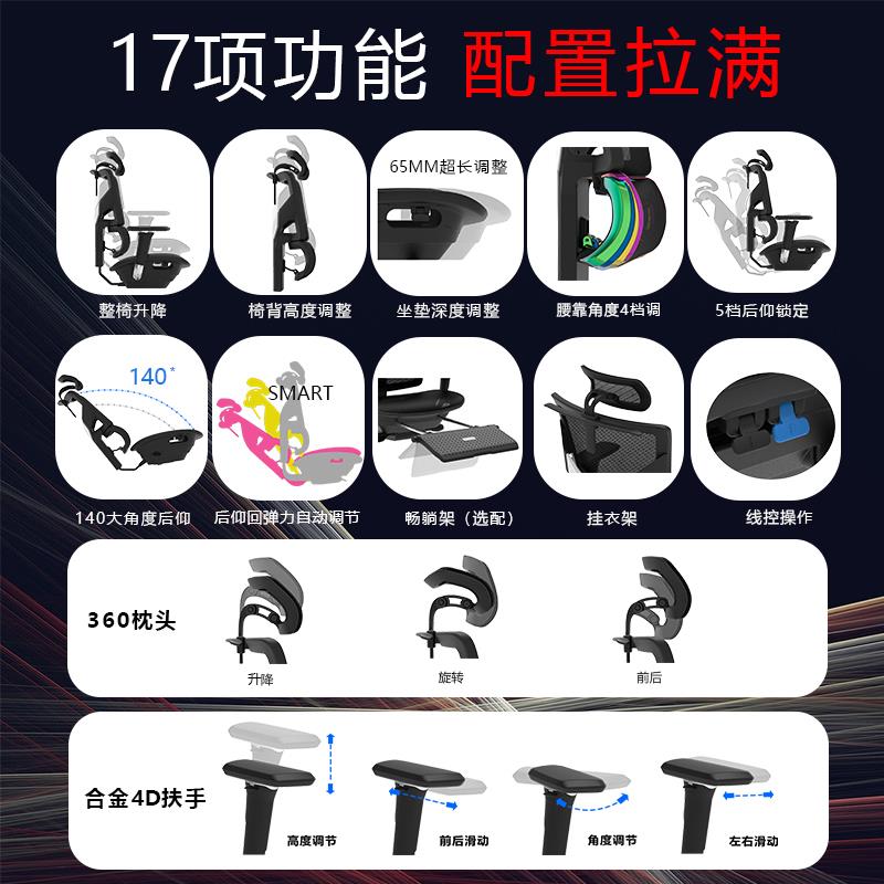 人体工学椅子护腰电脑椅家用舒适久坐办公椅午睡两用宿舍电竞座椅