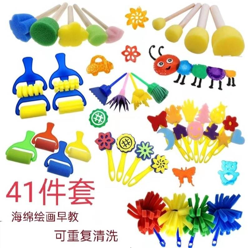宝宝创意画画工具42件套 幼儿园早教美术绘画涂鸦海绵拓印套装 包邮