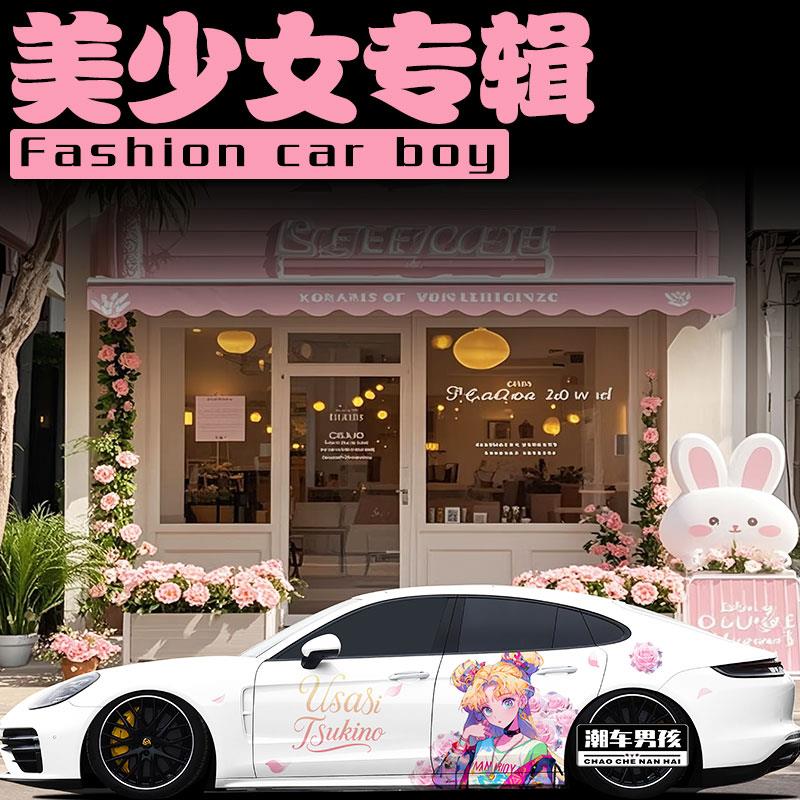个性 可爱美少女汽车两侧贴纸 定制 保时捷帕拉梅拉车贴 甜妹专属