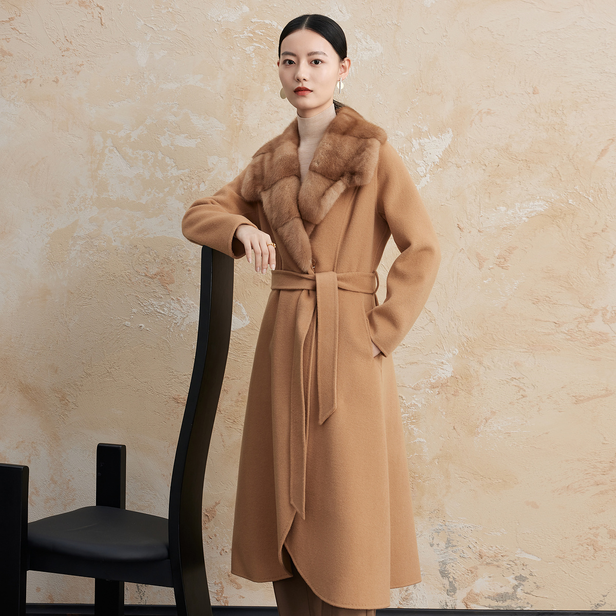 RUISHI芮时 重磅驼绒桑蚕丝羊毛慵懒两穿领毛呢大衣女秋冬外套女