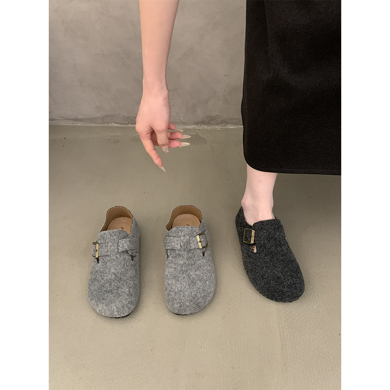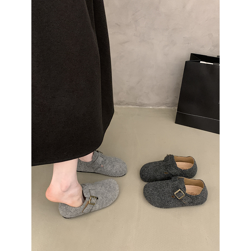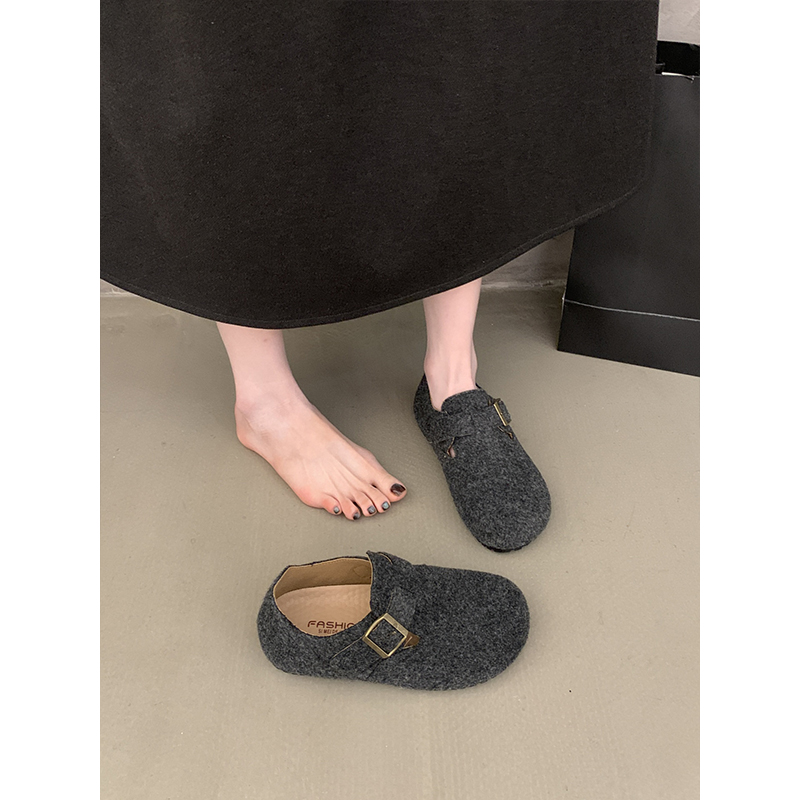 博肯单鞋 厚底灰色毛呢全包勃肯鞋 一脚蹬孕妇豆豆鞋 秋季 女2025新款