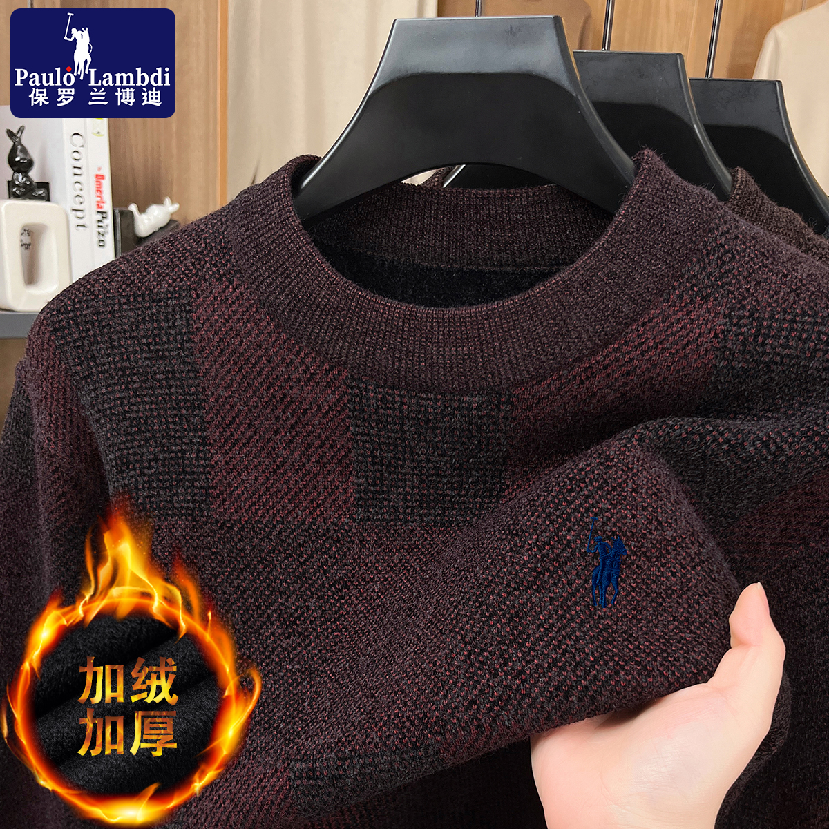 针织打底衫 保暖内搭爸爸装 毛衣加绒加厚假两件新款 红蜻蜓中年男士