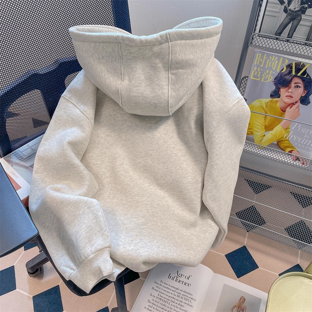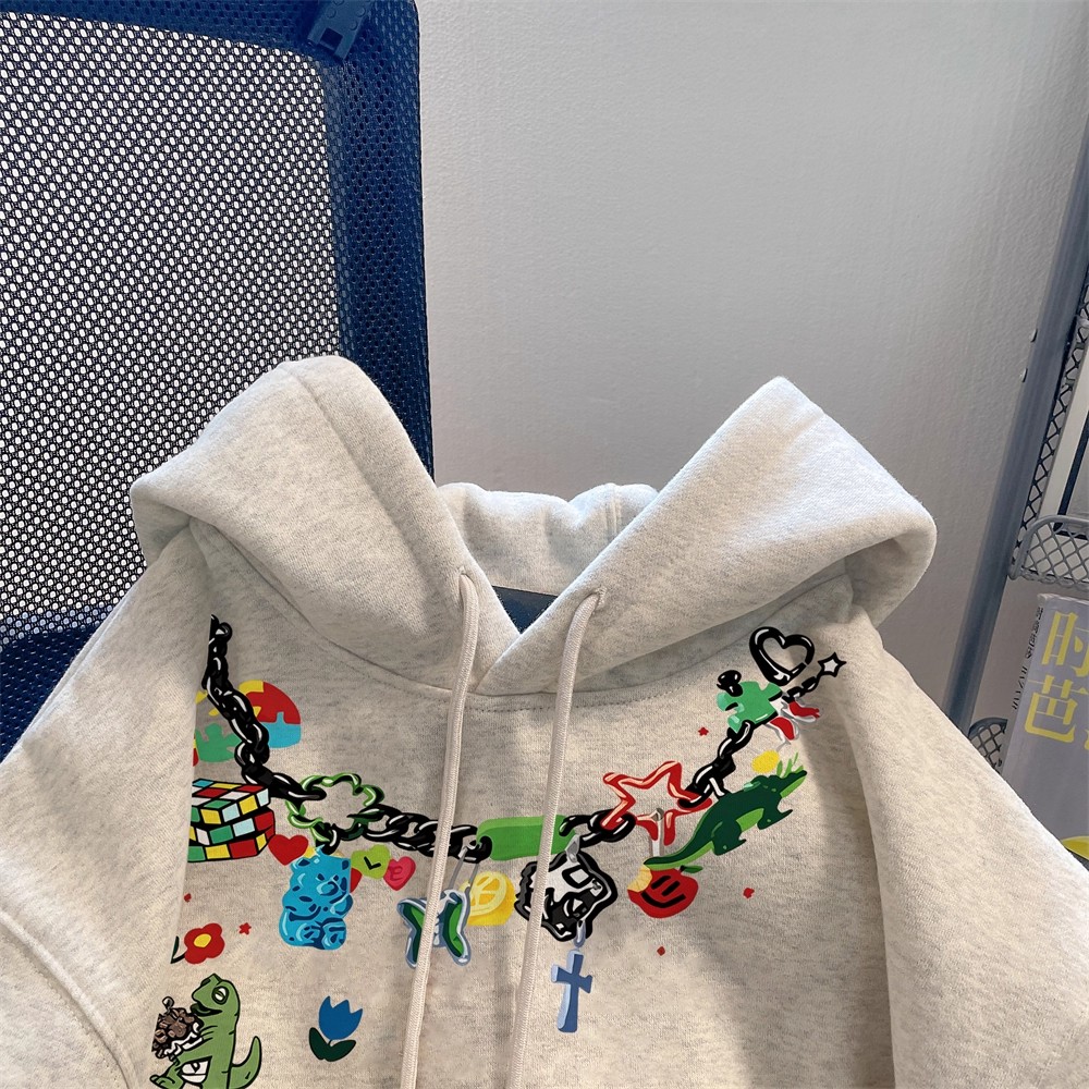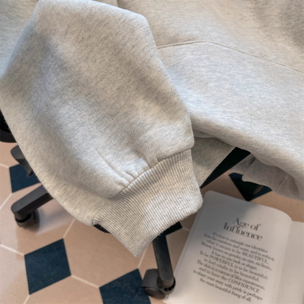 潮牌街头宽松运动帽衫 秋季 外套 重磅复古灰色连帽卫衣男款 V37美式