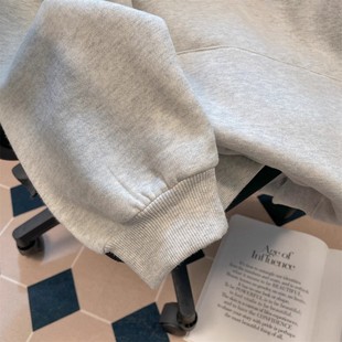复古 连帽秋oversize刺绣字母上衣美式 森马卫衣女中长款 撞色插肩袖