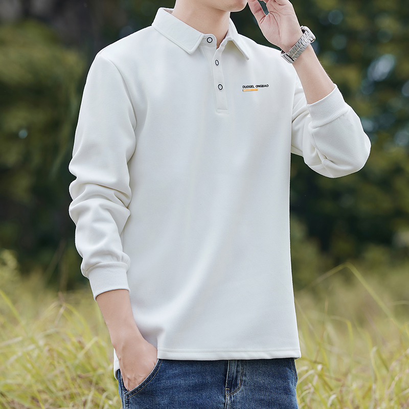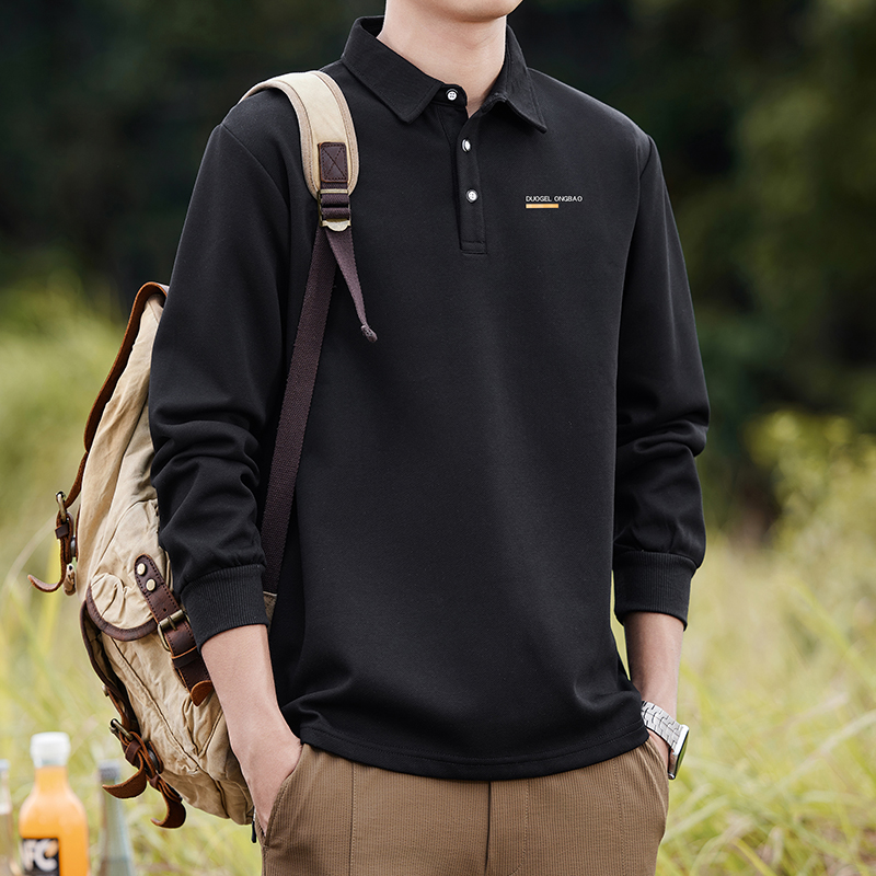 潮流纯色长袖 回力POLO衫 翻领宽松休闲打底衫 2025新款 T恤 男春秋季