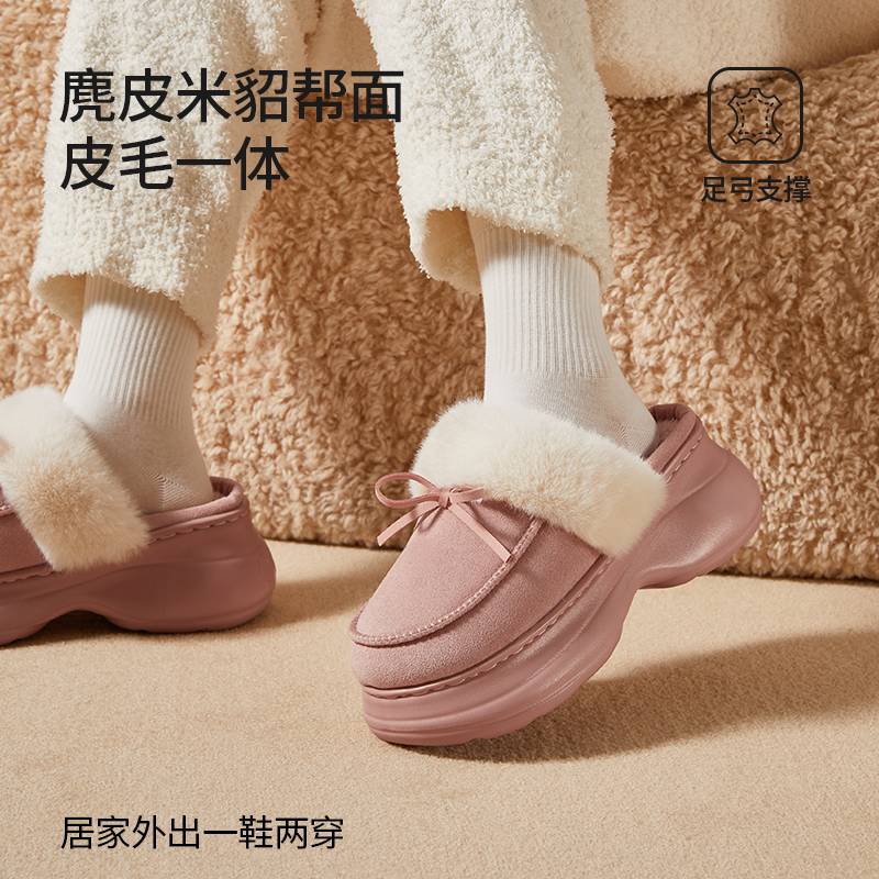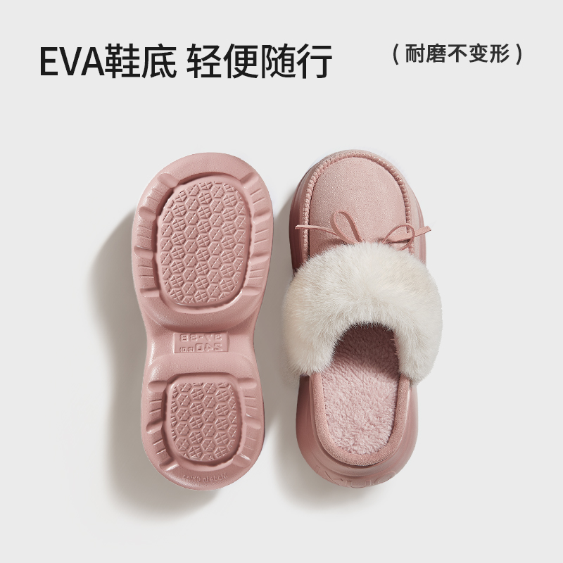 穆勒棉鞋 保暖防滑加厚毛绒2025新款 女士家居秋冬季 朴西厚底棉拖鞋