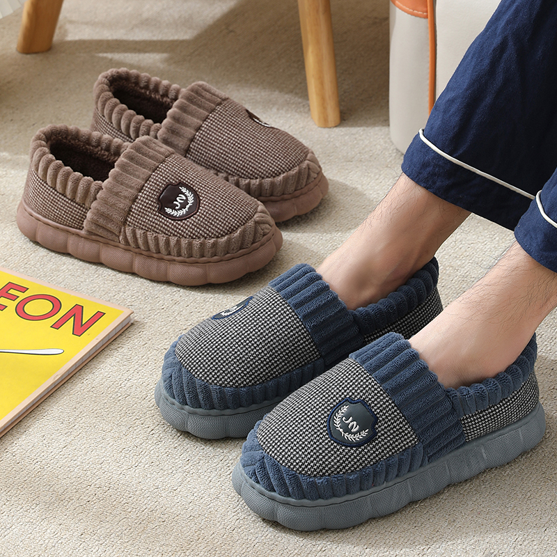 家居家用加厚加绒厚底防滑保暖带跟棉鞋 冬季 冬天女 男士 包跟棉拖鞋