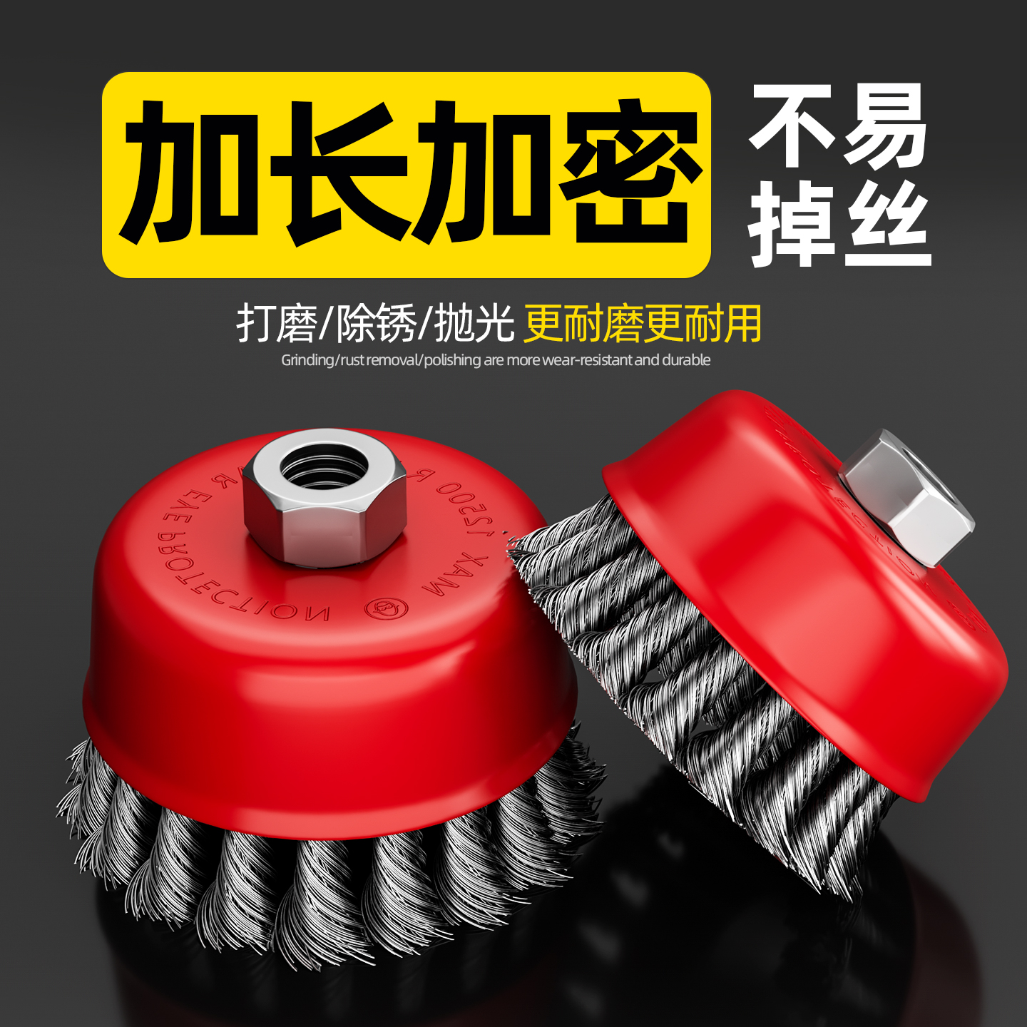 新款 钢丝刷碗型钢丝轮磨头除锈神器打磨工具抛光轮100角磨机扭丝