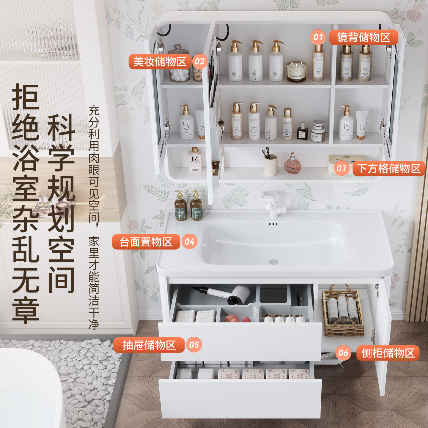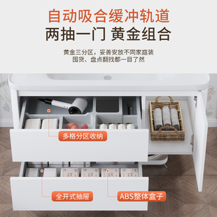 智能橡木烤漆侧边收纳浴室柜卫生间洗脸盆柜组合陶瓷一体盆洗漱台