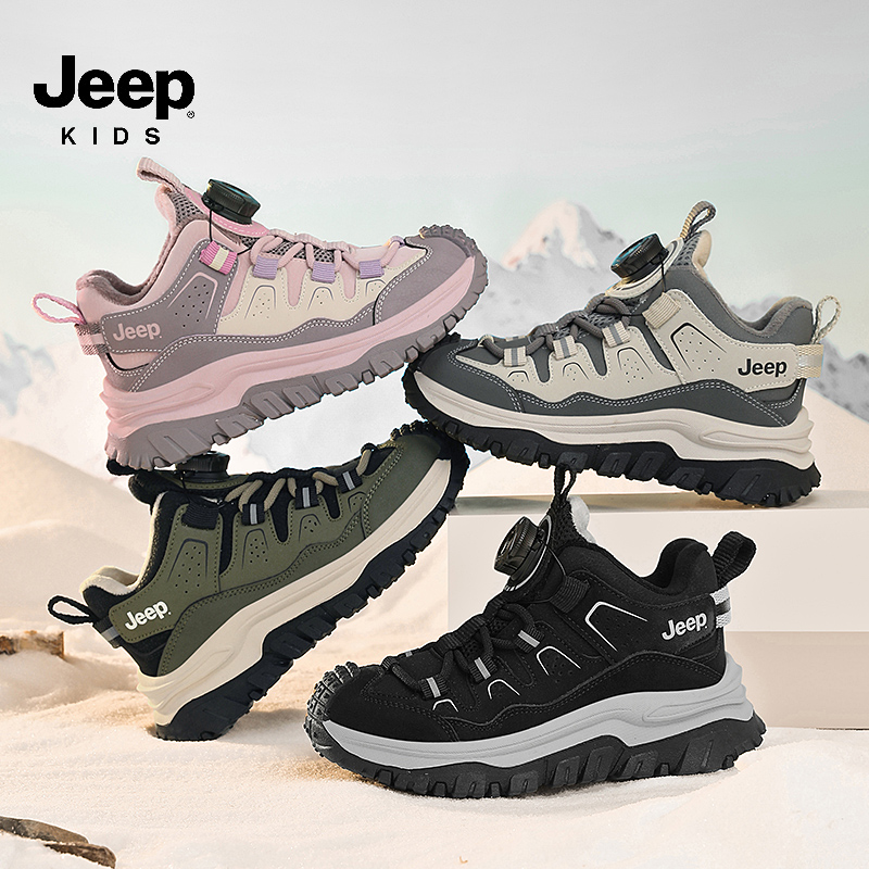 子加绒棉鞋 皮面儿童户外登山鞋 冬季 二棉运动鞋 2025新款 jeep男童鞋