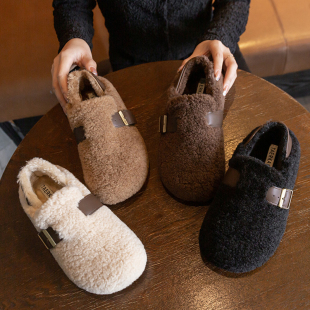 女外穿2025新款 女鞋 冬季 乐福棉鞋 子 加绒雪地靴一脚蹬豆豆鞋 毛毛鞋